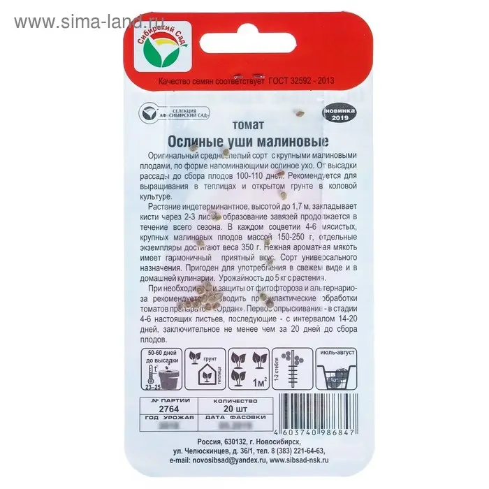 Семена Томат "Ослиные уши малиновые", 20 шт