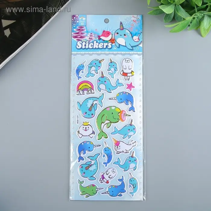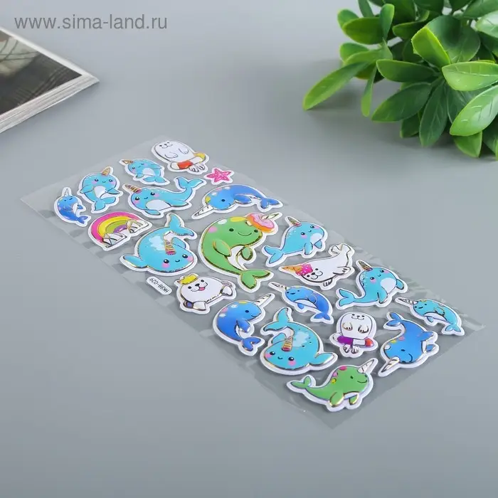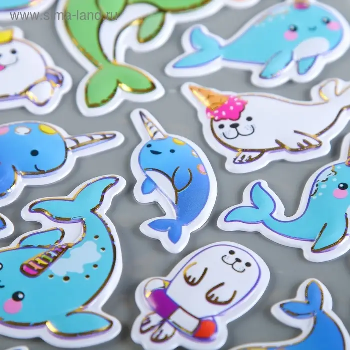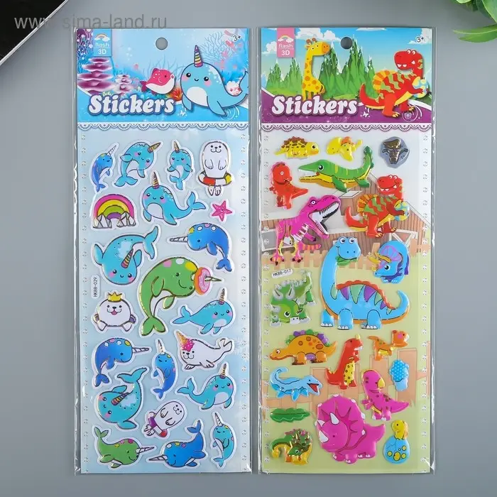 Наклейка пластик "Динозавры/Тюлени" выпуклая с золотой обводкой МИКС 28х11 см