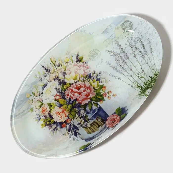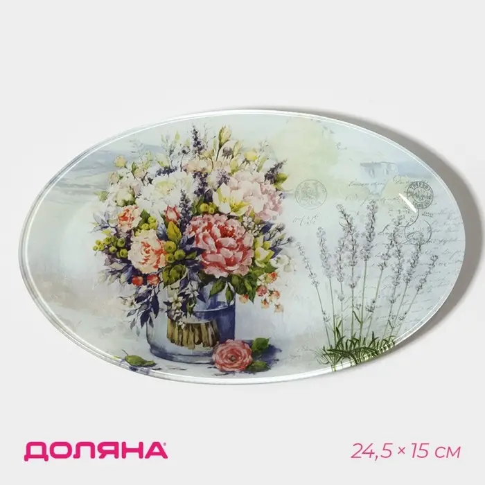 Блюдо стеклянное сервировочное Доляна «Весенний роман», овальное, 24,5×15×2 см