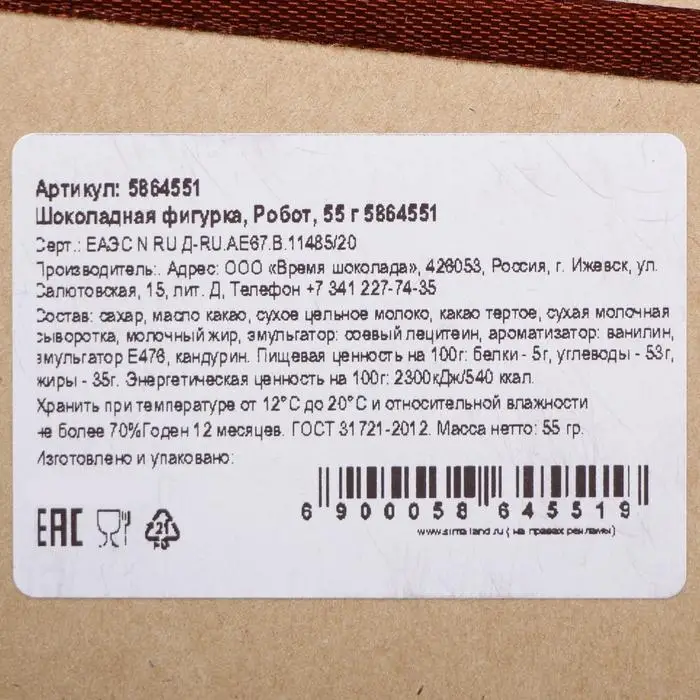 Шоколадная фигурка «Робот», 55 г