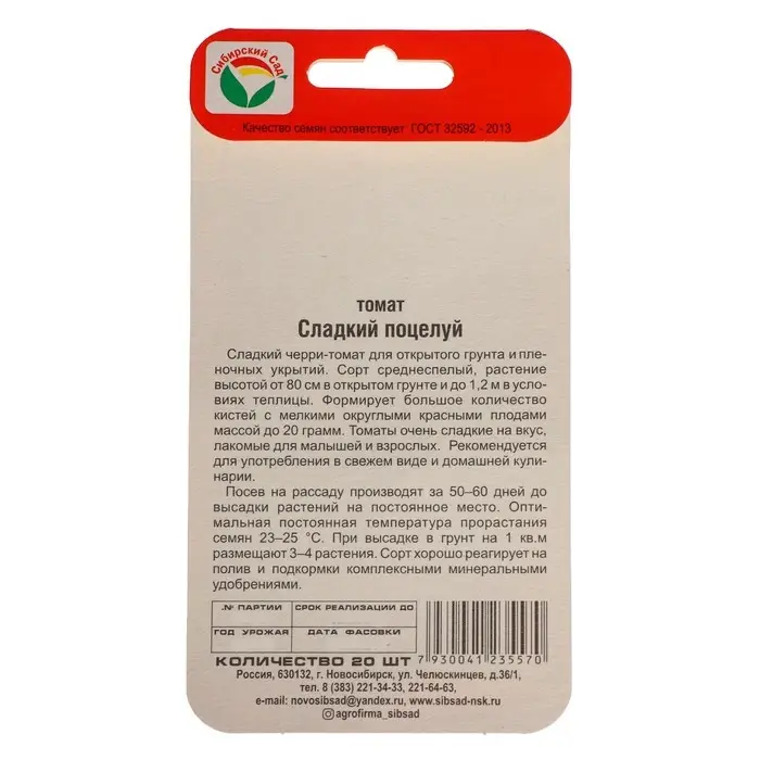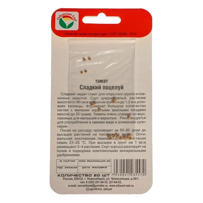 Семена Томат-черри "Сладкий поцелуй", 20 шт