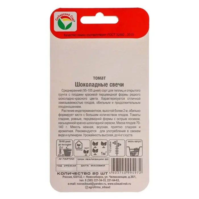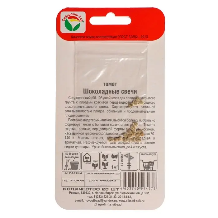 Семена Томат "Шоколадные свечи", 20 шт