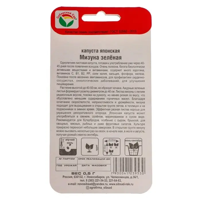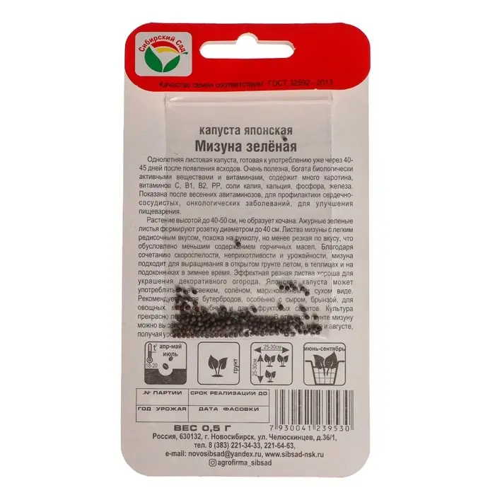 В последнее время дачники все больший интерес проявляют к необычным растениям. И одним из таких растений есть японская капуста Мизуна. Скороспелый (35-40 дней от всходов до уборки урожая) сорт. Листовая розетка высотой 40 см, листья темно-зеленые, лировидно-перистые по внешнему виду похожи на листья руколы. Черешки листьев белые. Растение не образует кочана. Вкус пряный, приятный. Используется чаще всего как салатная зелень. Подходит для приготовления супов, начинки пирогов, украшения бутербродов и закусок, листья замораживают, сушат, маринуют. В уходе растение не прихотливо, после срезки молодые листья быстро отрастают. Может выращиваться дома в горшке на подоконнике. Посев проводят в апреле в грунт. Для получения более раннего урожая высевают на рассаду в марте, высадка — в мае. В фазе двух-трех настоящих листьев всходы прореживают. Сорт холодо- и жаростойкий, устойчив к стрелкованию, любит влагу и умеренное внесение натуральных удобрений.