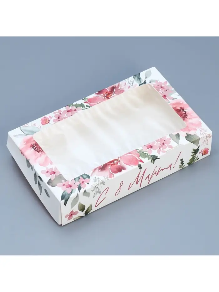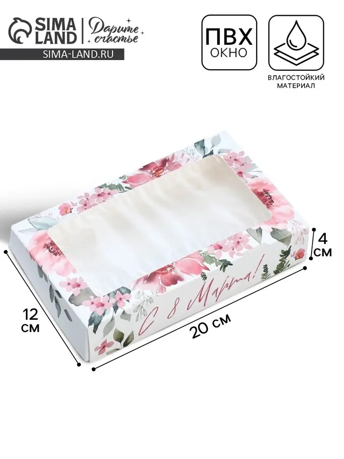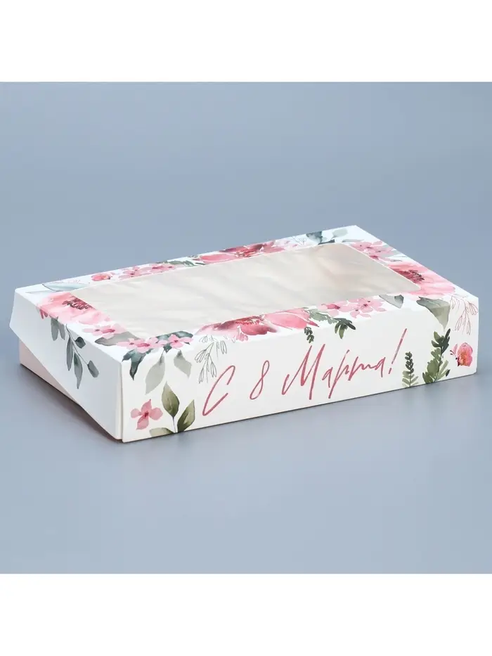 Кондитерская упаковка, коробка с ламинацией «С 8 марта», 20 х 12 х 4 см