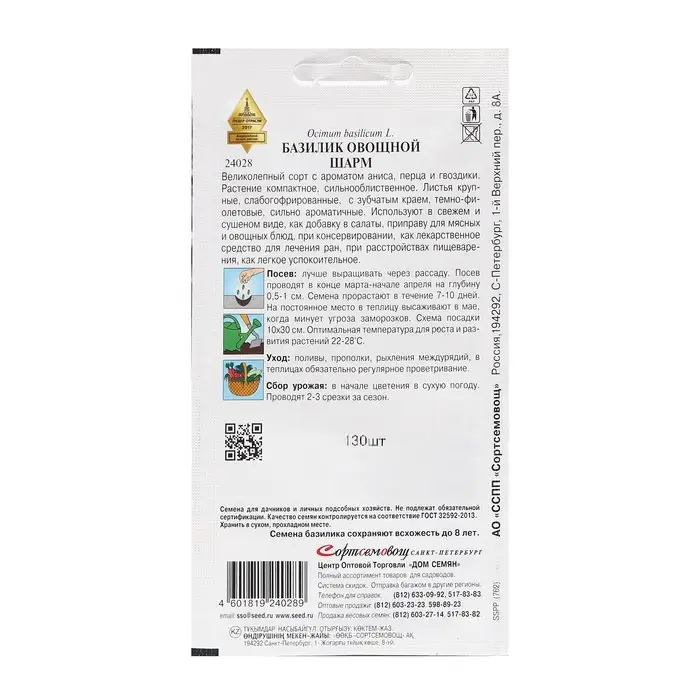 Семена Базилик "Зеленый ароматный", 0,1 г