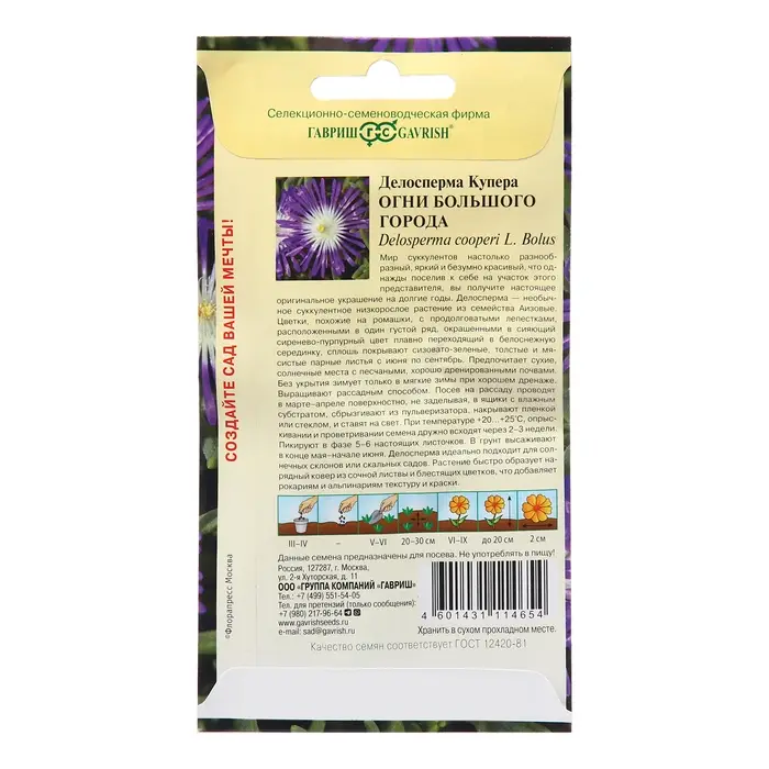Семена цветов Делосперма «Огни большого города», 7 шт., многолетник, «Гавриш»