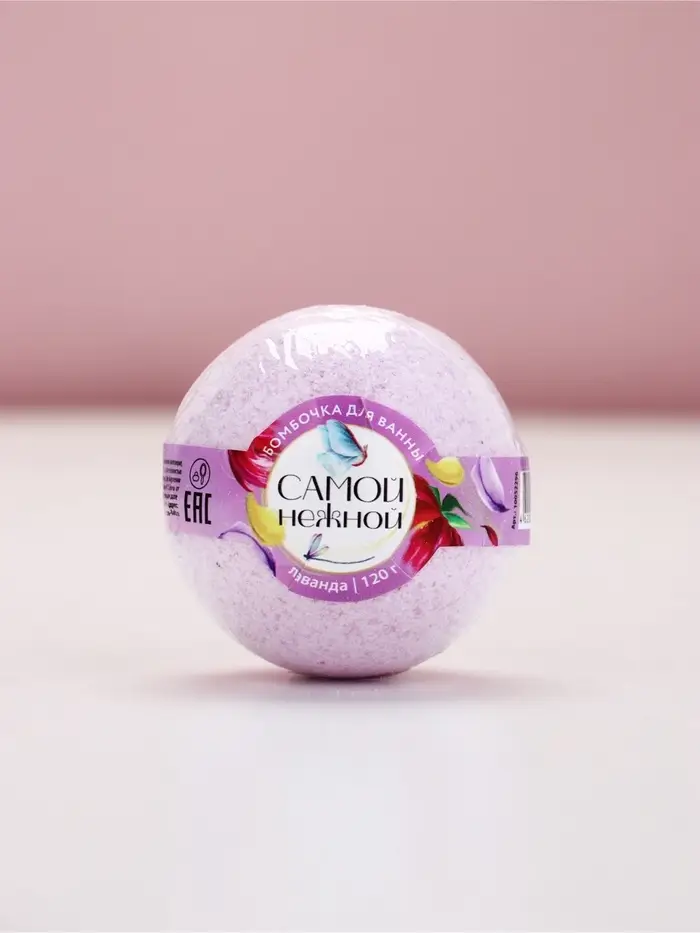Бомбочка для ванны «Самой нежной», 120 г, аромат лаванды, ЧИСТОЕ СЧАСТЬЕ