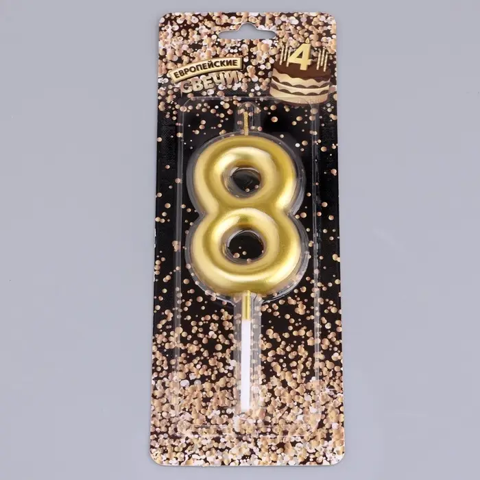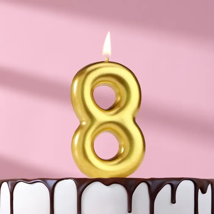 Свеча в торт «Европейская», цифра 8, 6 см, золото