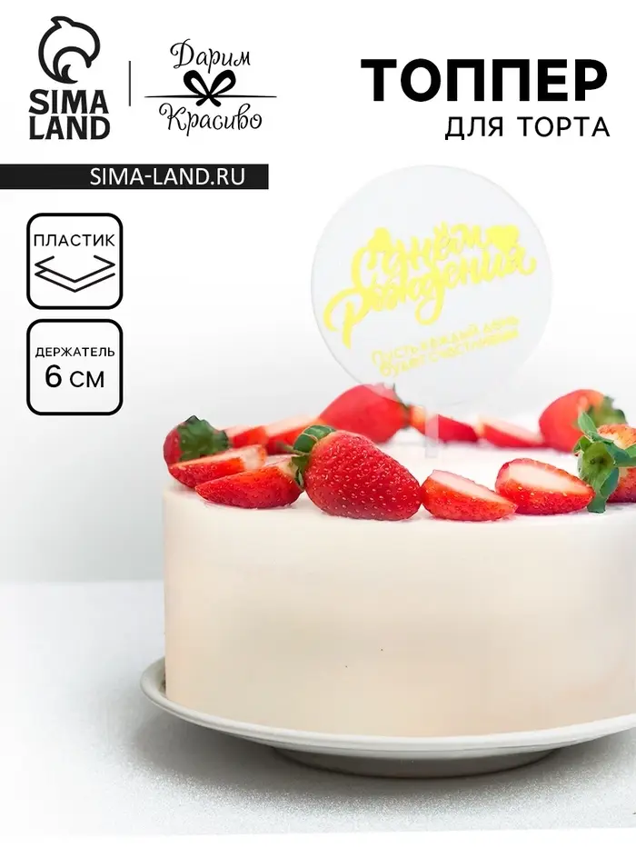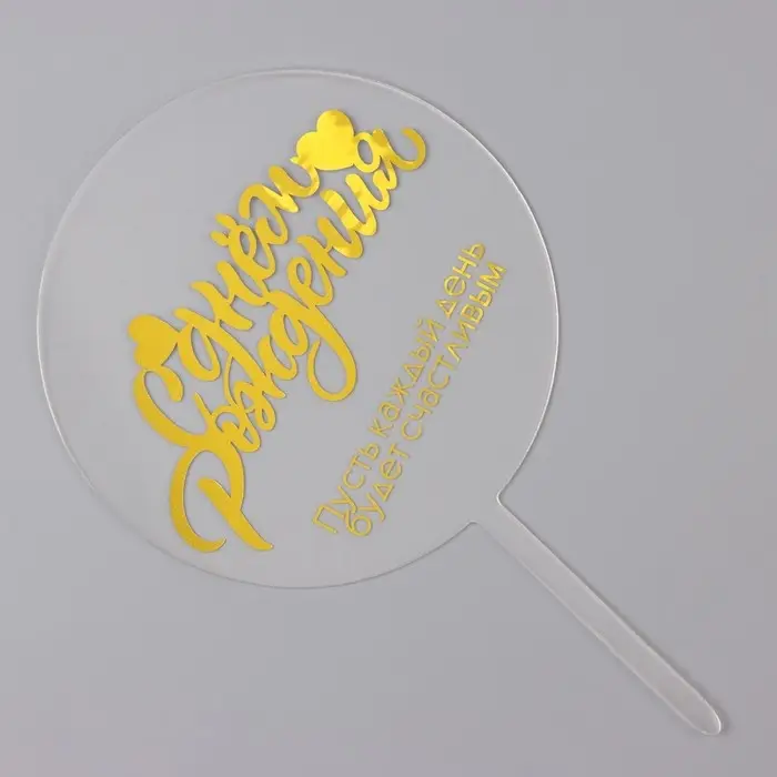 Топпер для торта «С днём рождения», прозрачный с желтым