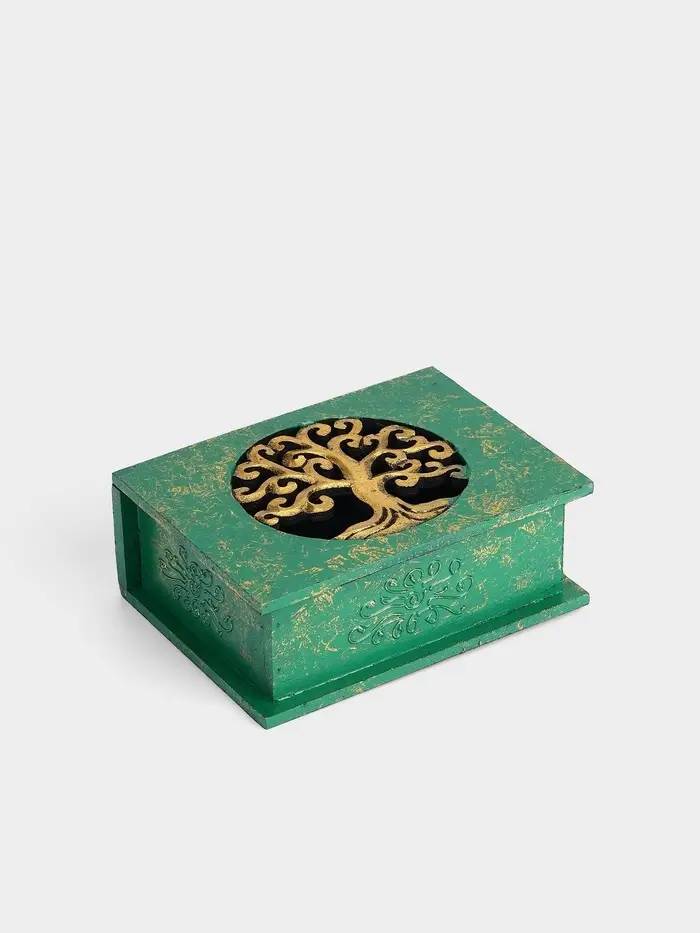 Эта шкатулка выполняет простую и важную задачу: останавливает хаос. Вместо поиска потерявшейся серьги в ящике, вы открываете крышку и сразу видите всё, что нужно. Зеленый цвет и силуэт дерева добавляют этому ежедневному действию небольшую порцию гармонии, превращая рутину в акт заботы о своих вещах. Выберите понятный инструмент для поддержания личного порядка.