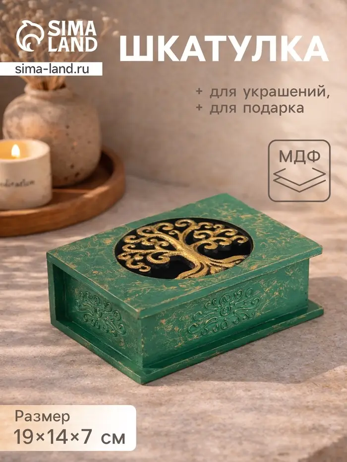 Шкатулка «Древо», 19×14×7 см, МДФ, зелёная