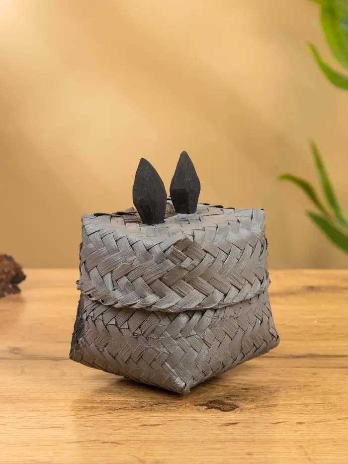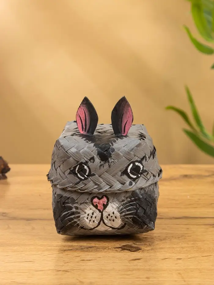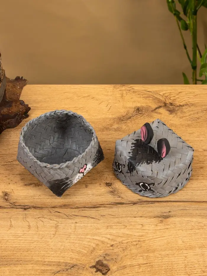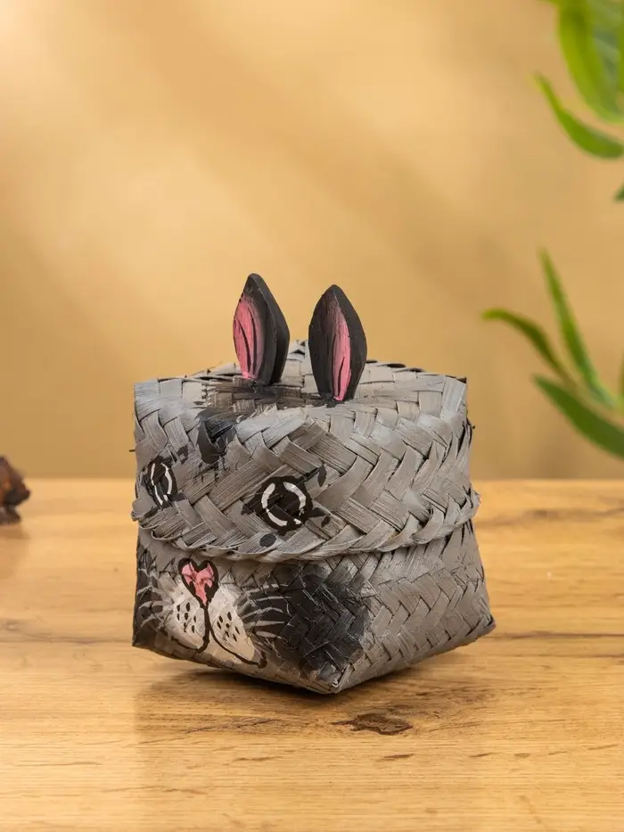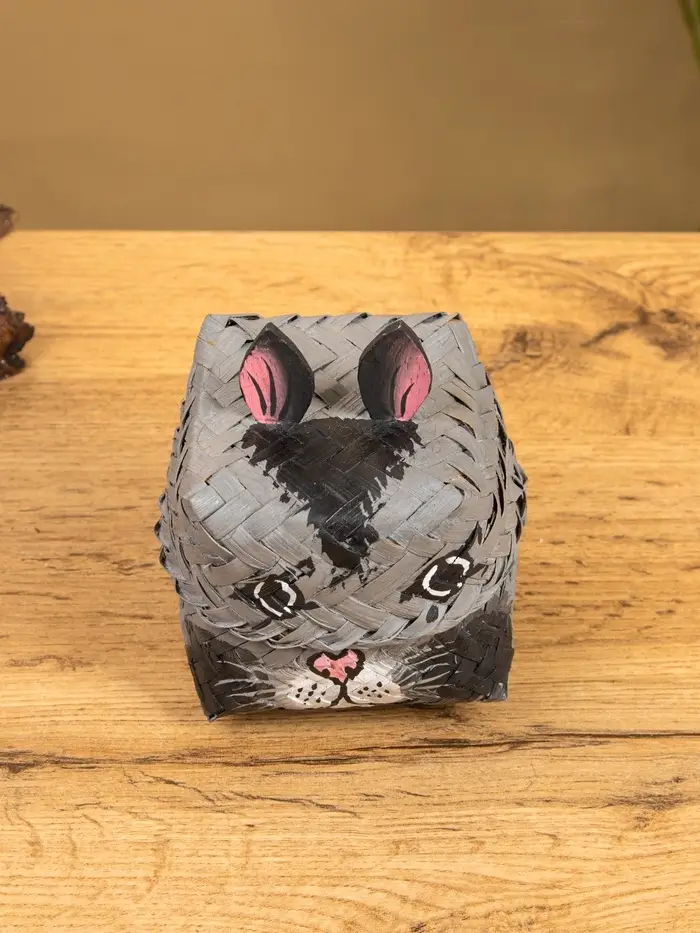 Корзинка «Кот», 8×8×13 см, бамбук, серая