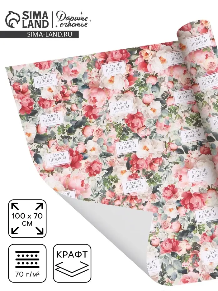 Бумага упаковочная крафт «Цветы», 70×100 см