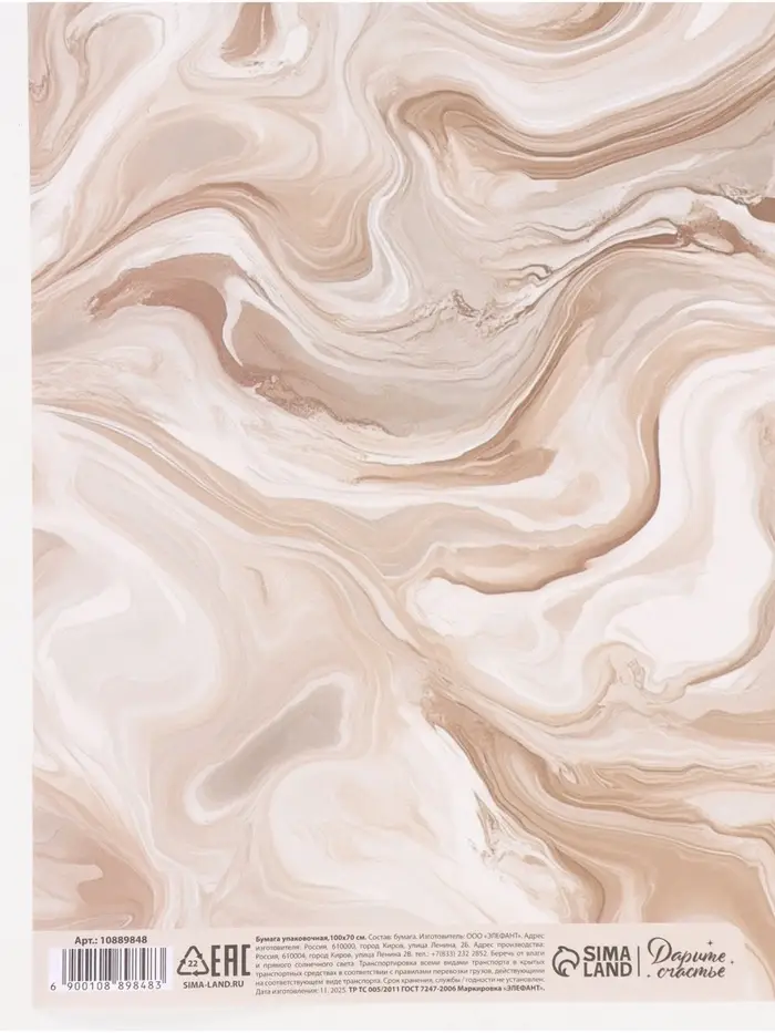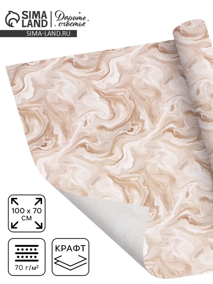 Бумага упаковочная крафт «Мрамор», 70×100 см