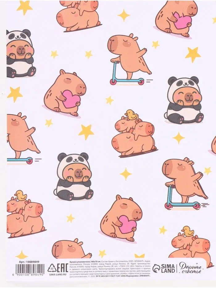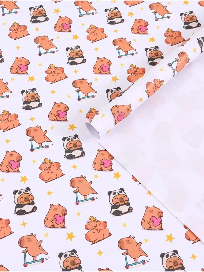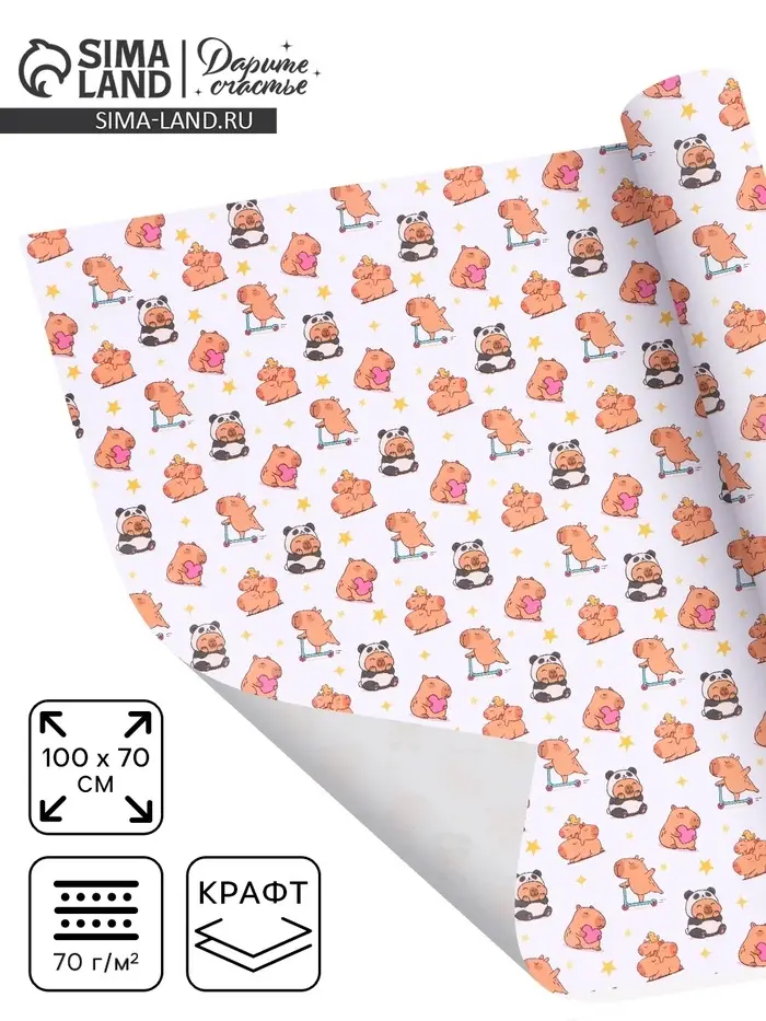 Бумага упаковочная крафт «Капибары», 70×100 см