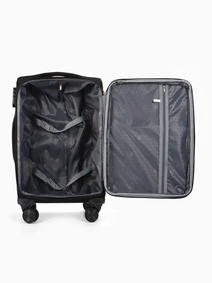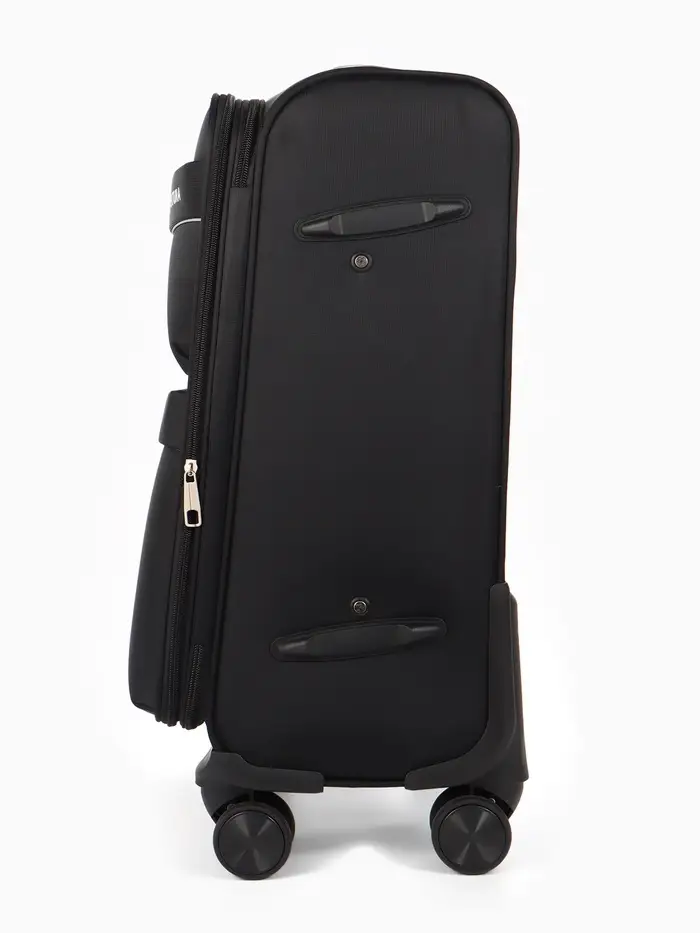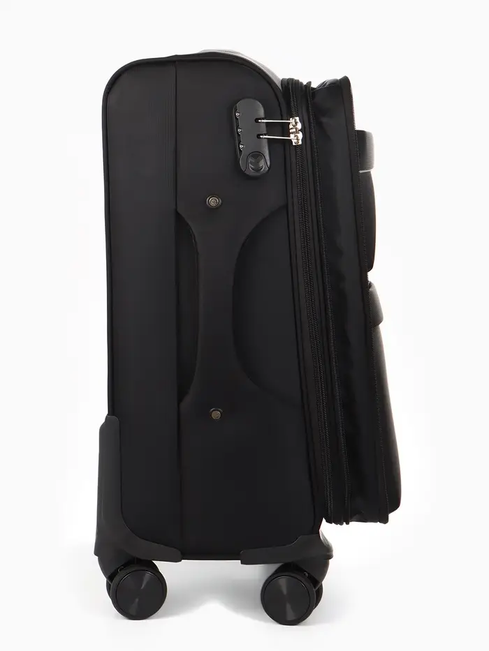 Этот чёрный текстильный чемодан на четырёх колёсах — ваш надёжный спутник в любых поездках. Он создан для тех, кто ценит практичность и лаконичный дизайн. Формат 20 дюймов идеально подходит для ручной клади в самолёте, а функция увеличения объёма дарит дополнительную гибкость при сборе. Вам не придётся беспокоиться о безопасности вещей: встроенный кодовый замок надёжно защитит содержимое.