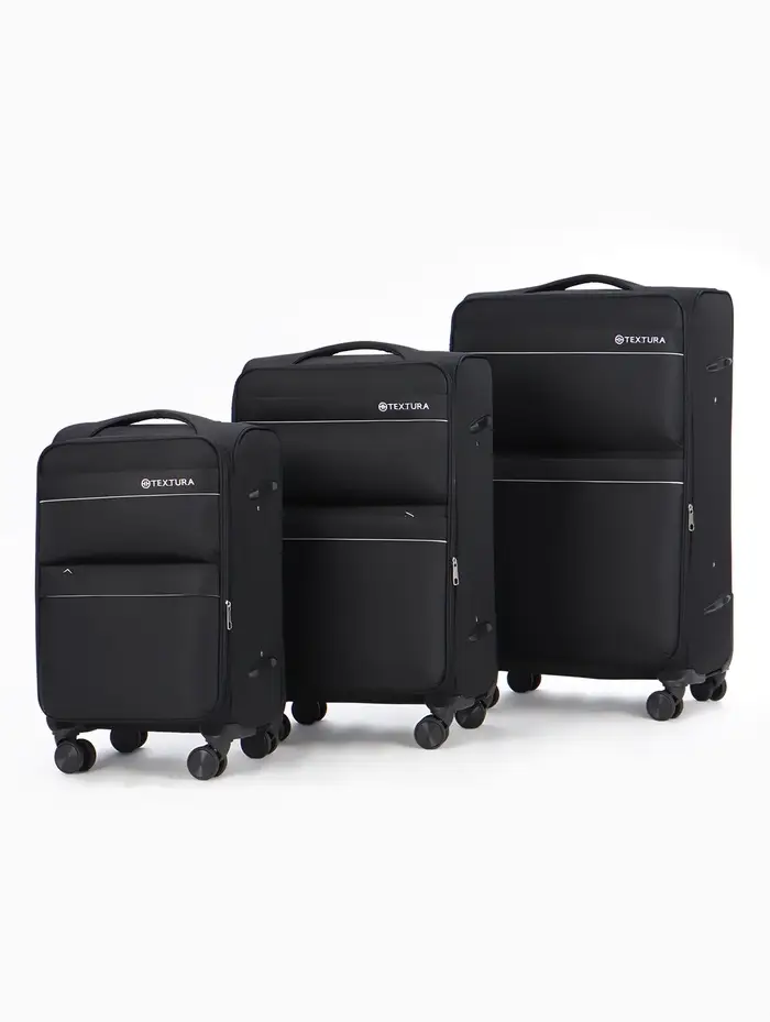 Чемодан на колёсах TEXTURA, кодовый замок, с увеличением, 36×25×58 см, 20", чёрный