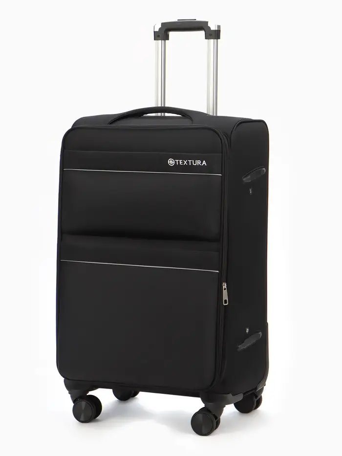 Чемодан 24",Текст,42*26*68,отд на молнии,2 нар/карм, увелич,код замок,4 колеса, черный