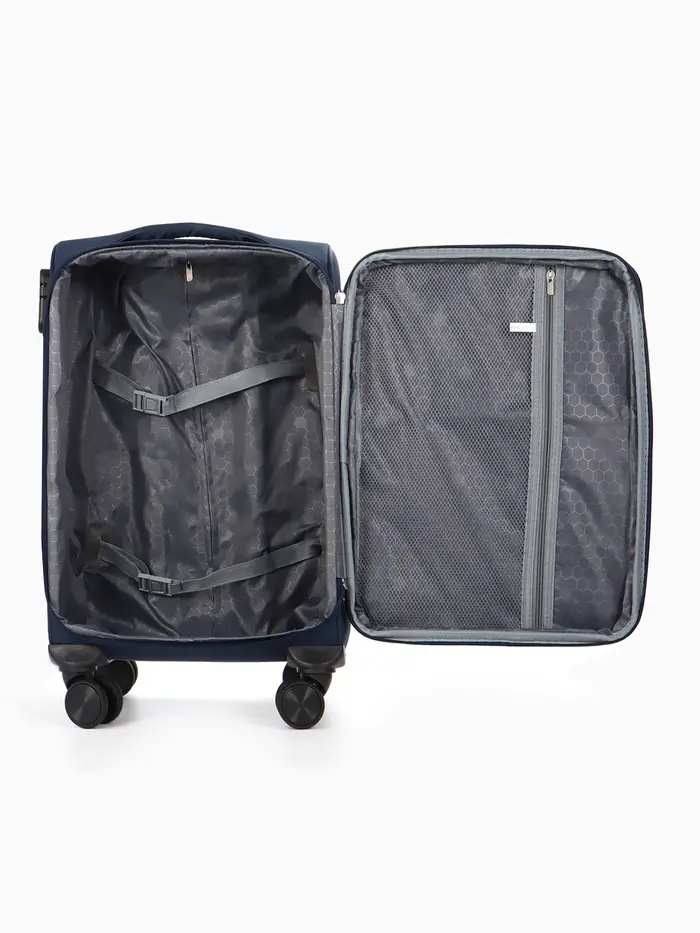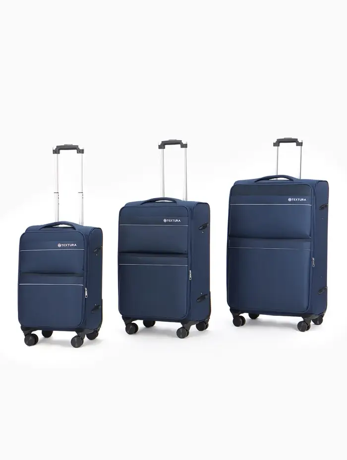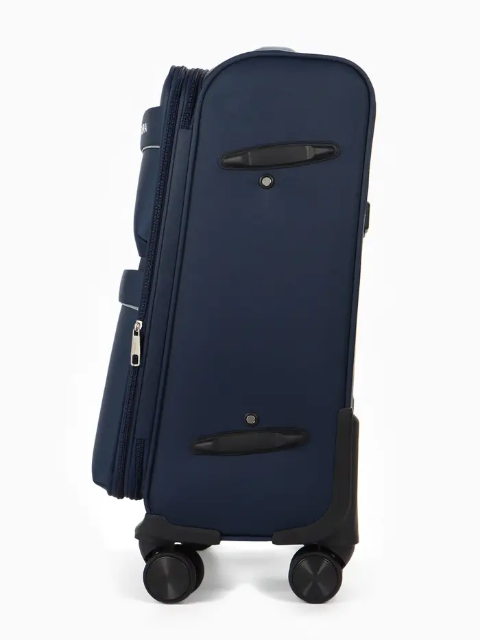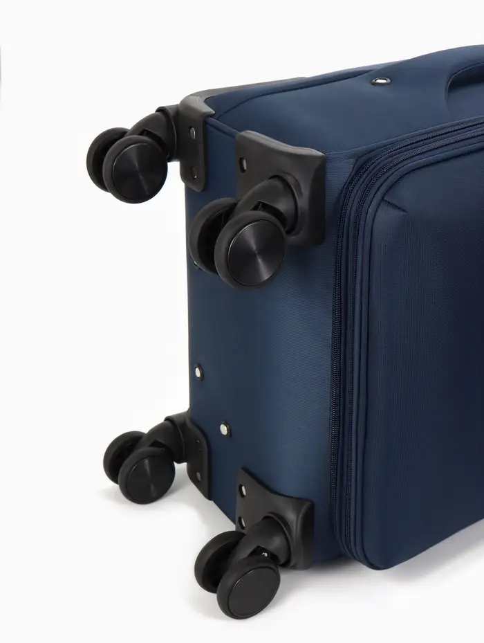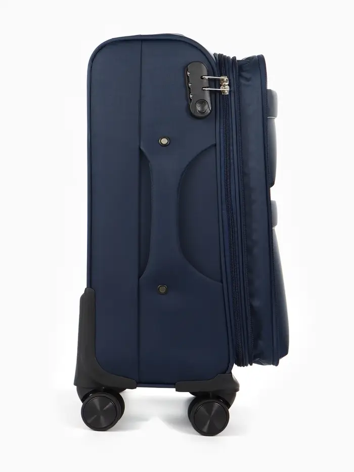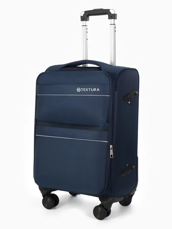 Этот синий чемодан на колёсах — ваш надёжный спутник в любых поездках. Формат 20 дюймов идеально подходит для ручной клади в самолёт, а продуманная конструкция делает его универсальным выбором для командировок, шопинг-туров или короткого отпуска. Прочная текстильная ткань с фактурной отделкой сочетает лёгкость и устойчивость к дорожным испытаниям.