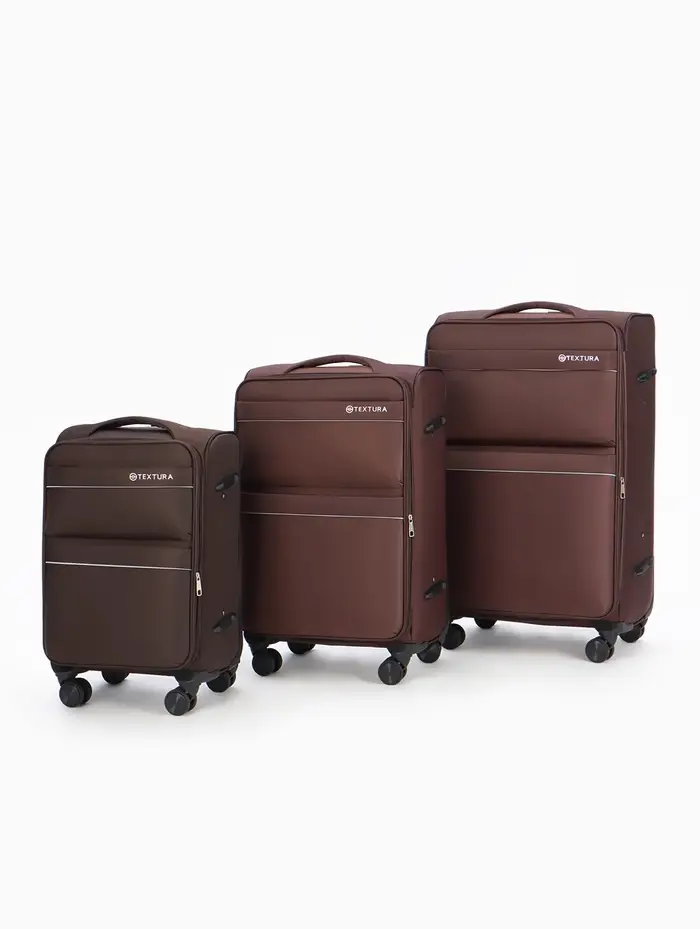 Чемодан на колёсах TEXTURA, кодовый замок, текстильный, с увеличением, 47×30×78 см, 28", коричневый