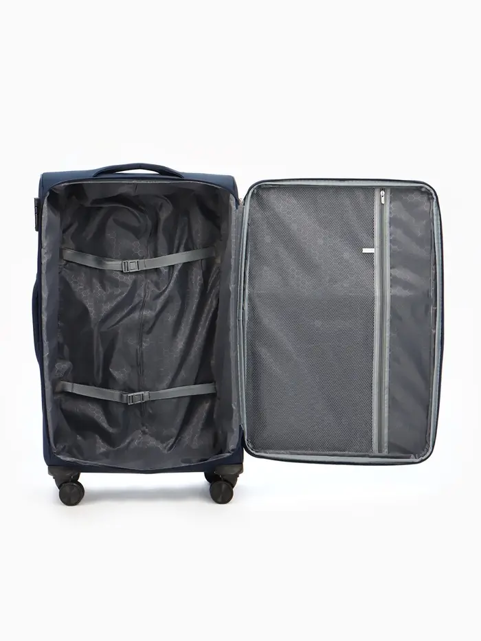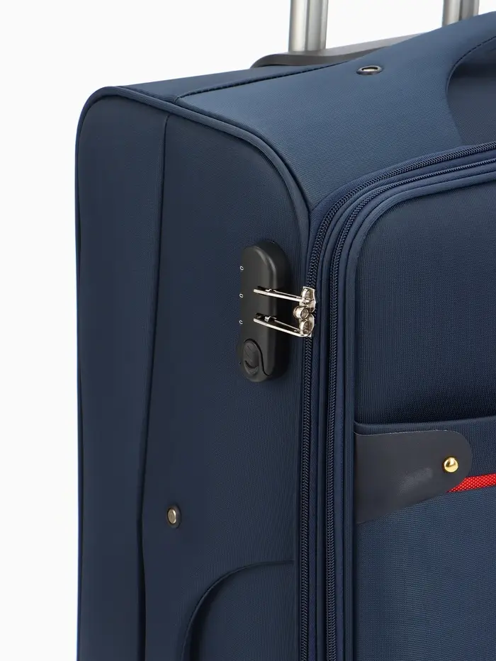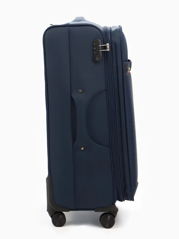 Этот синий чемодан на колёсах — ваш надёжный спутник в любых поездках. Он создан для тех, кто ценит продуманность в деталях и свободу в движении. Объём в 109 литров легко увеличивается, когда нужно взять с собой чуть больше. Четыре многозадачных колеса обеспечивают манёвренность и устойчивость, а прочный текстиль корпуса надёжно защищает вещи. Кодовый замок сохранит содержимое в безопасности, а эргономичная ручка сделает перемещение комфортным.