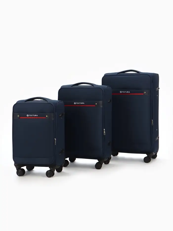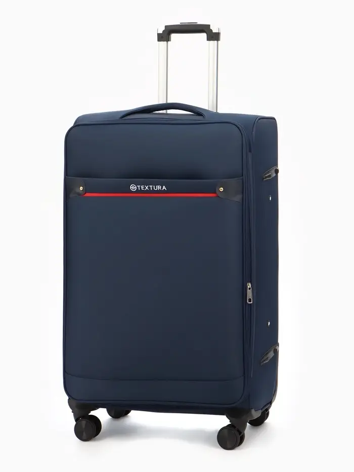 Чемодан на колёсах TEXTURA, кодовый замок, текстильный, с увеличением, 47×30×78 см, 28", синий