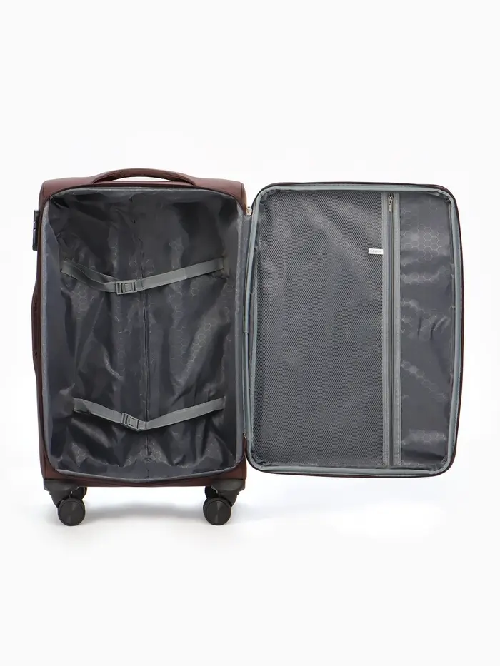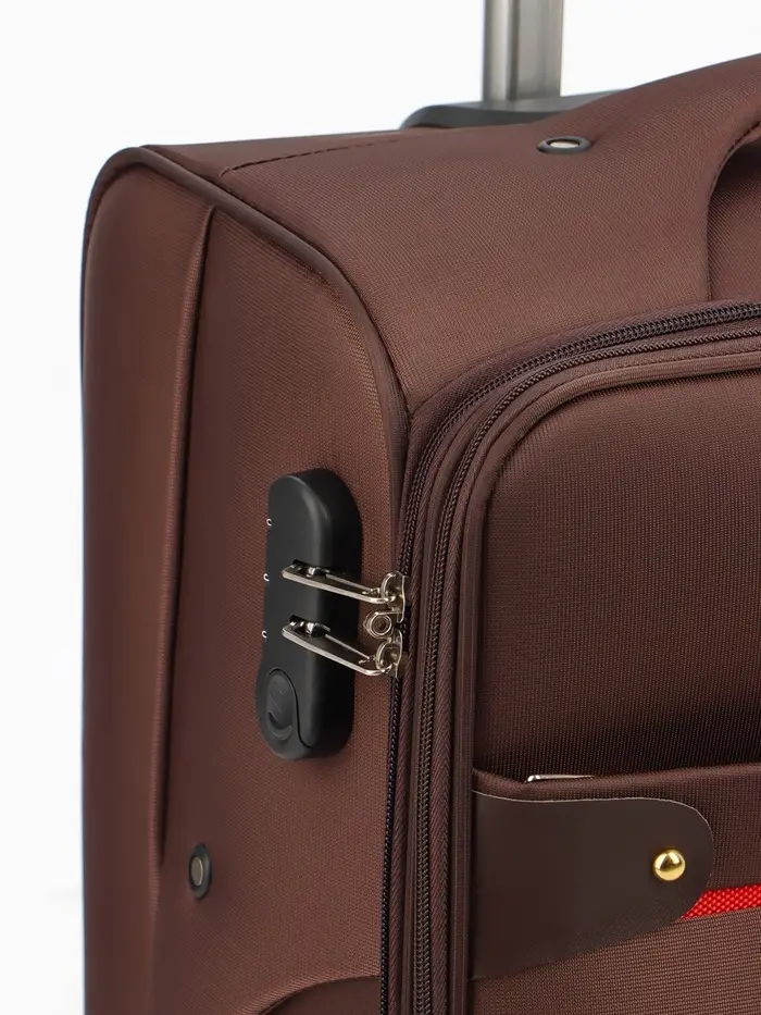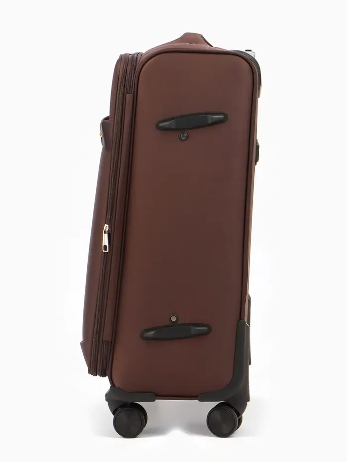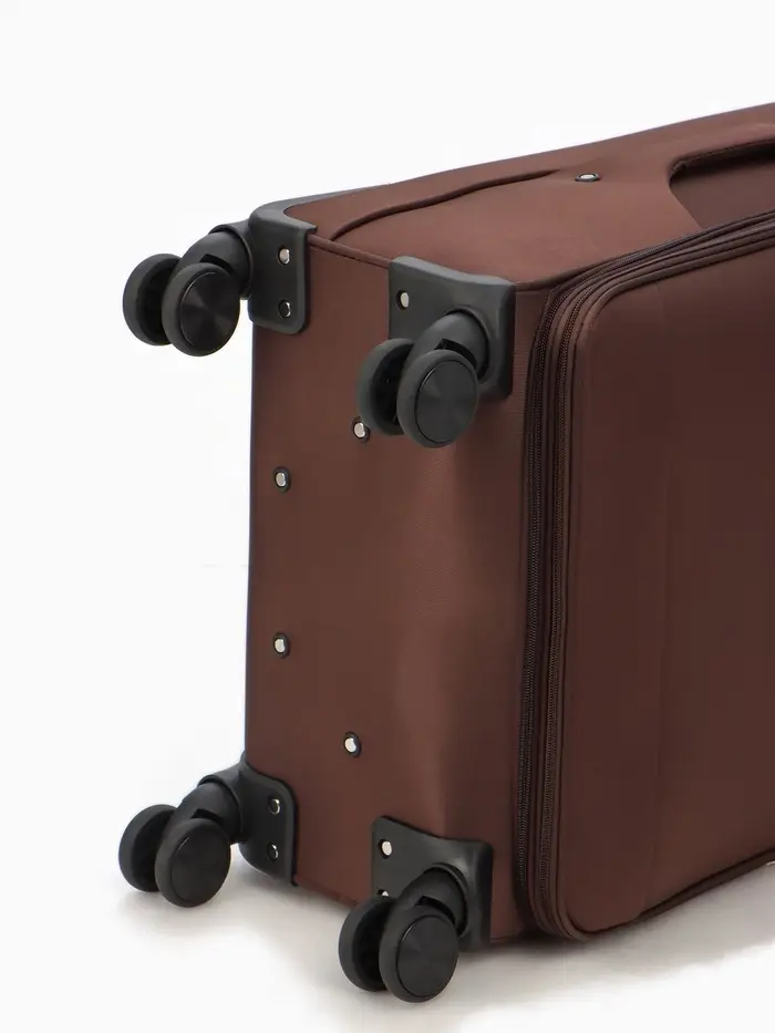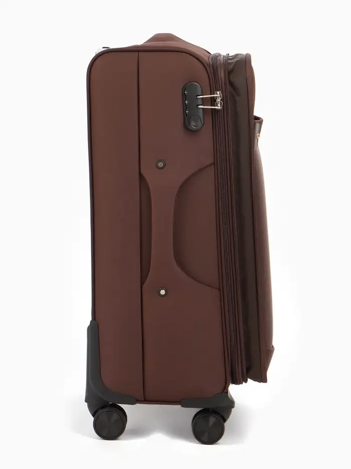Этот коричневый чемодан на четырёх колёсах — ваш надёжный спутник в любых поездках. Модель среднего размера 24 дюйма сочетает практичность и стиль, подходящий как мужчинам, так и женщинам. Прочный текстильный материал обеспечивает долговечность, а встроенная система увеличения объёма дарит дополнительное пространство для покупок или непредвиденных вещей. Вам не придётся беспокоиться о безопасности багажа — надёжный кодовый замок надёжно защитит содержимое.