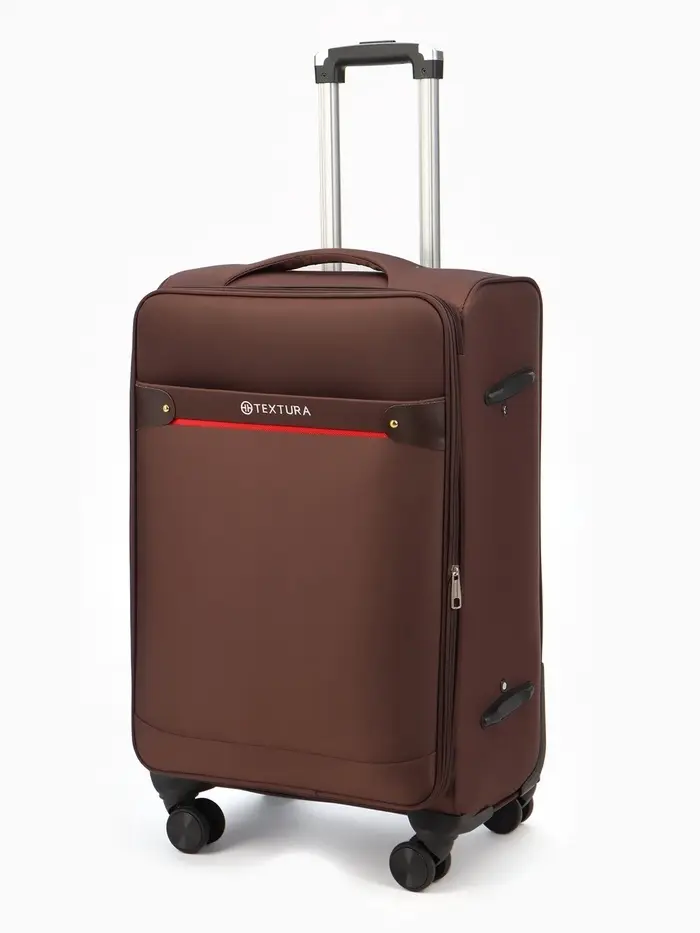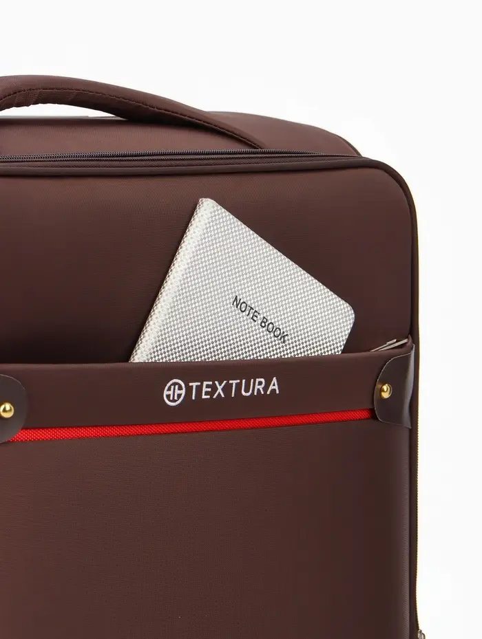 Чемодан на колёсах TEXTURA, кодовый замок, текстильный, с увеличением, 47×30×78 см, 28", коричневый