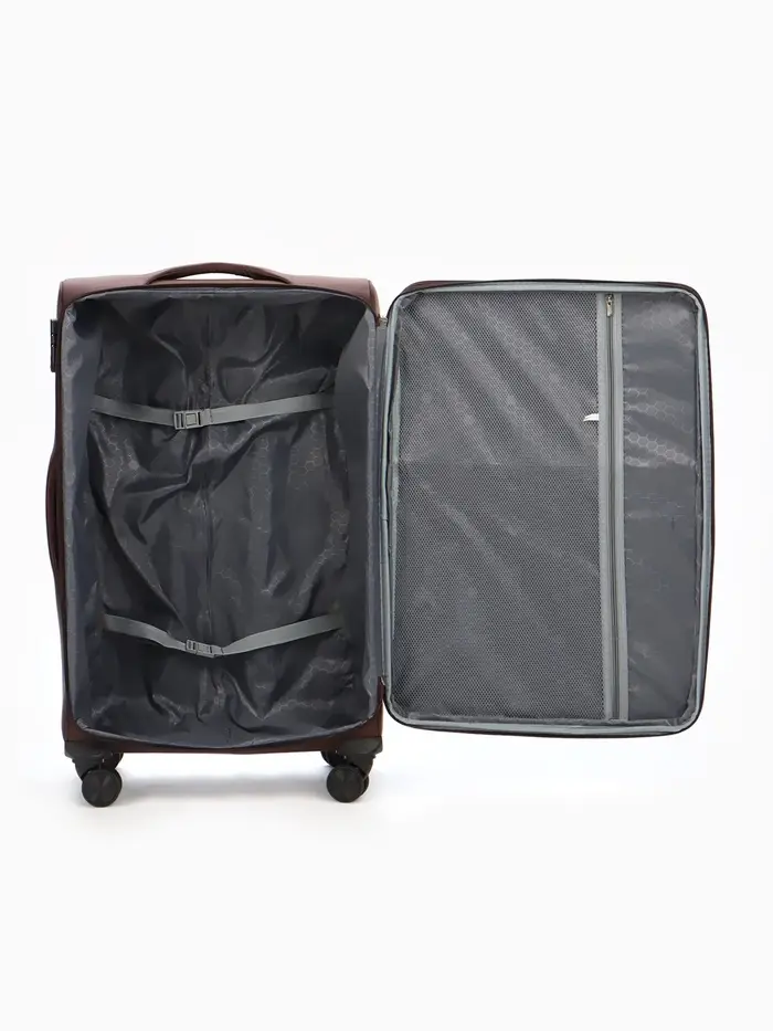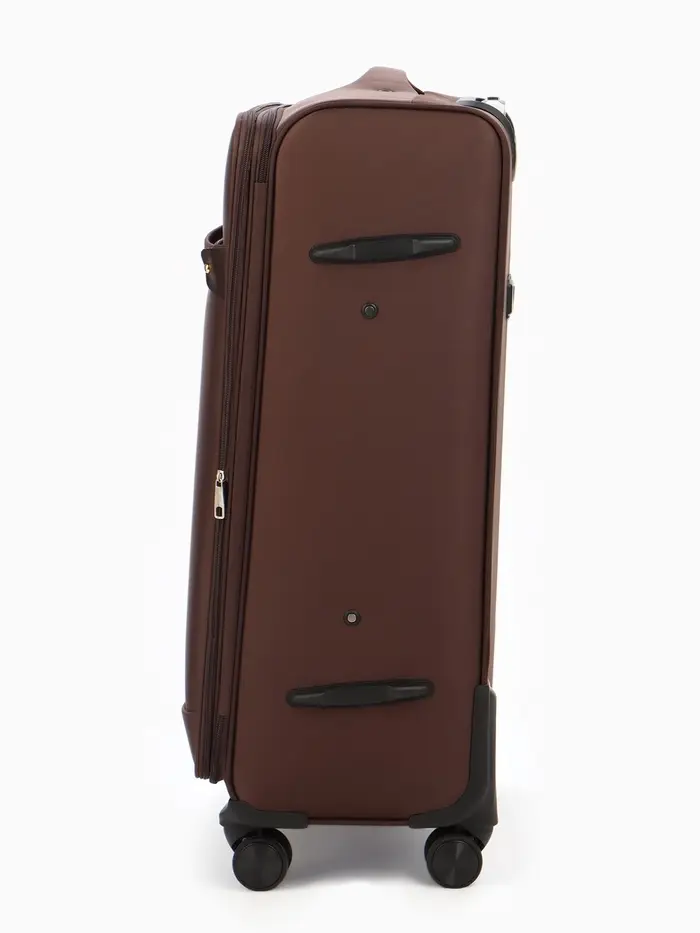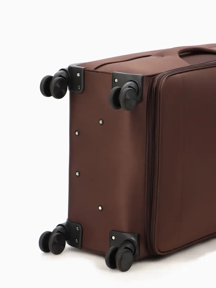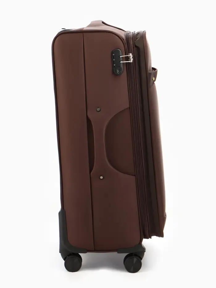 Этот коричневый дорожный чемодан на четырёх колёсах создан для тех, кто ценит надёжность и практичность в каждой поездке. Его вместительный текстильный корпус с системой увеличения объёма легко адаптируется под ваши вещи, а встроенный кодовый замок обеспечивает спокойствие за сохранность багажа. Универсальный дизайн и прочная конструкция делают его верным спутником в любом путешествии, будь то деловая командировка или продолжительный отпуск.
