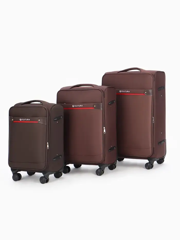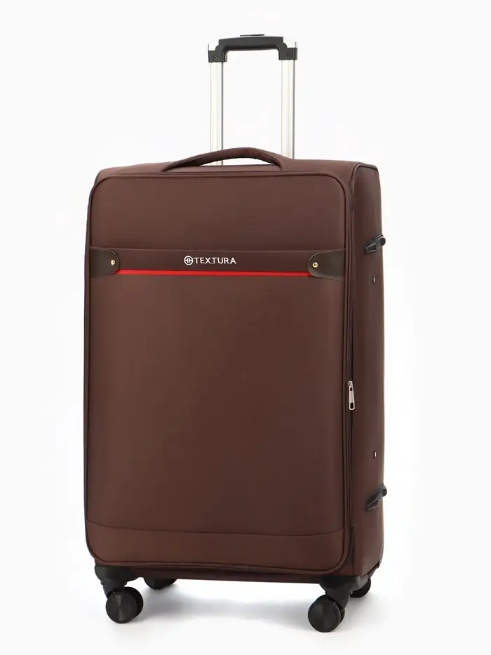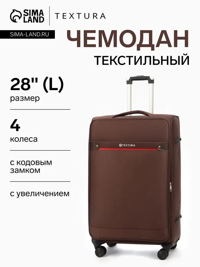 Чемодан на колёсах TEXTURA, кодовый замок, текстильный, с увеличением, 47×30×78 см, 28", коричневый
