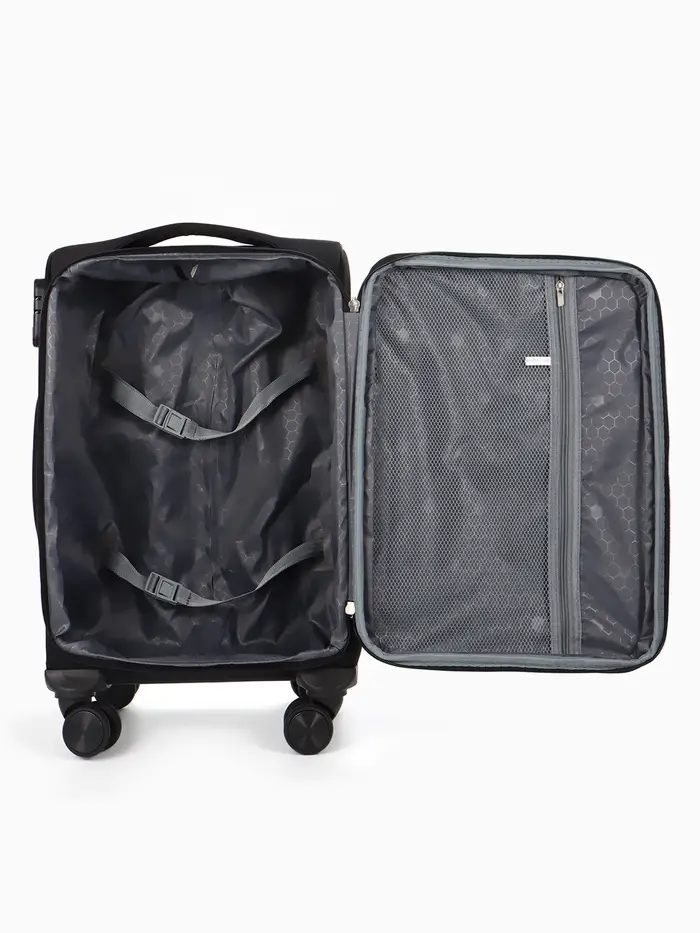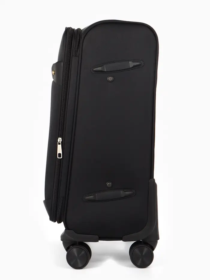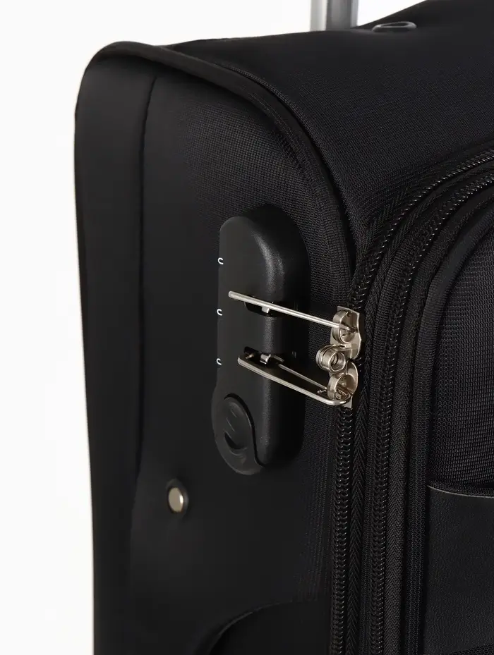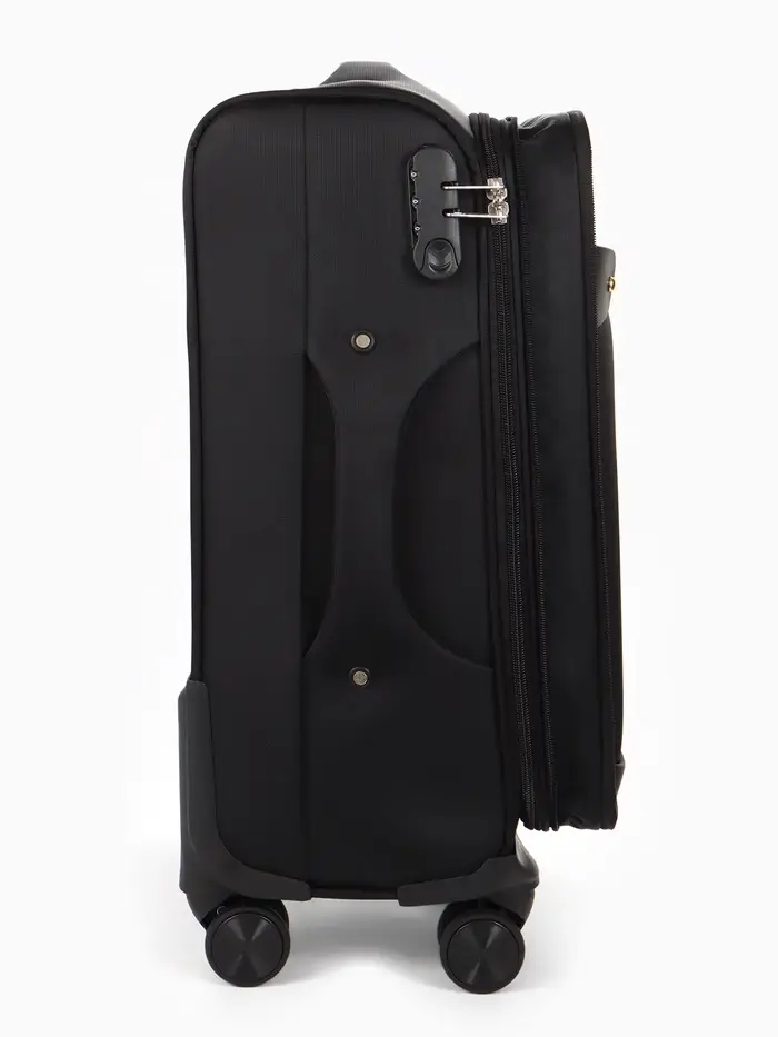 Чёрный текстильный чемодан на четырёх колёсах — ваш надёжный спутник в любых поездках. Его лаконичный дизайн и продуманная конструкция решают главные задачи путешественника: мобильность, вместимость и безопасность. Кодовый замок защищает вещи, а система увеличения добавляет ценные литры объёма, если планы меняются. Чемодан легко катится в аэропорту, помещается в ручную кладь и готов к новым маршрутам.