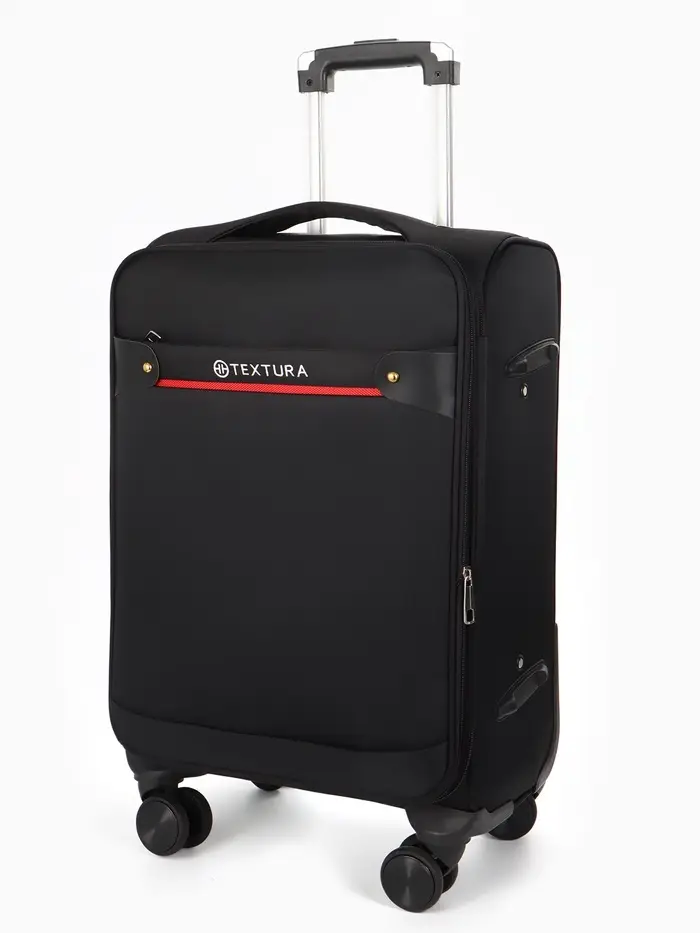 Чемодан на колёсах TEXTURA, кодовый замок, текстильный, с увеличением, 36×25×58 см, 20", чёрный