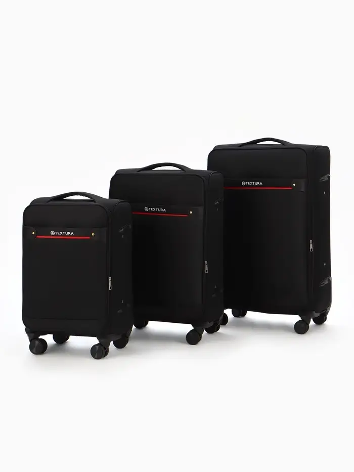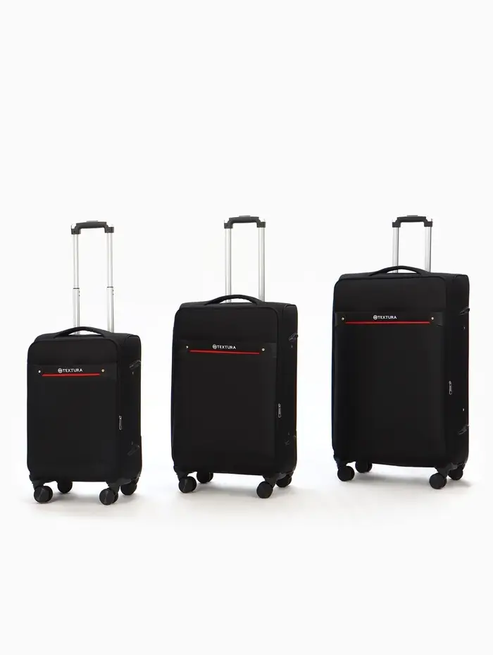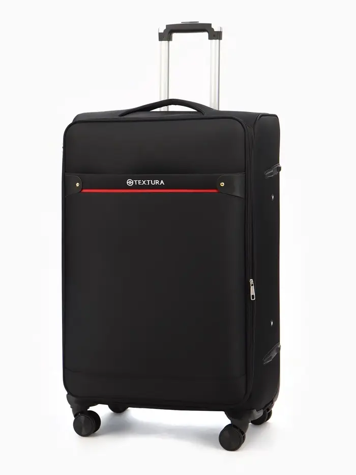 Чемодан на колёсах TEXTURA, кодовый замок, текстильный, с увеличением, 47×30×78 см, 28", чёрный