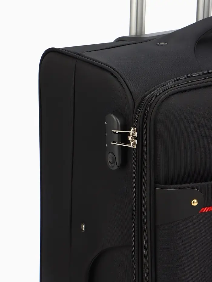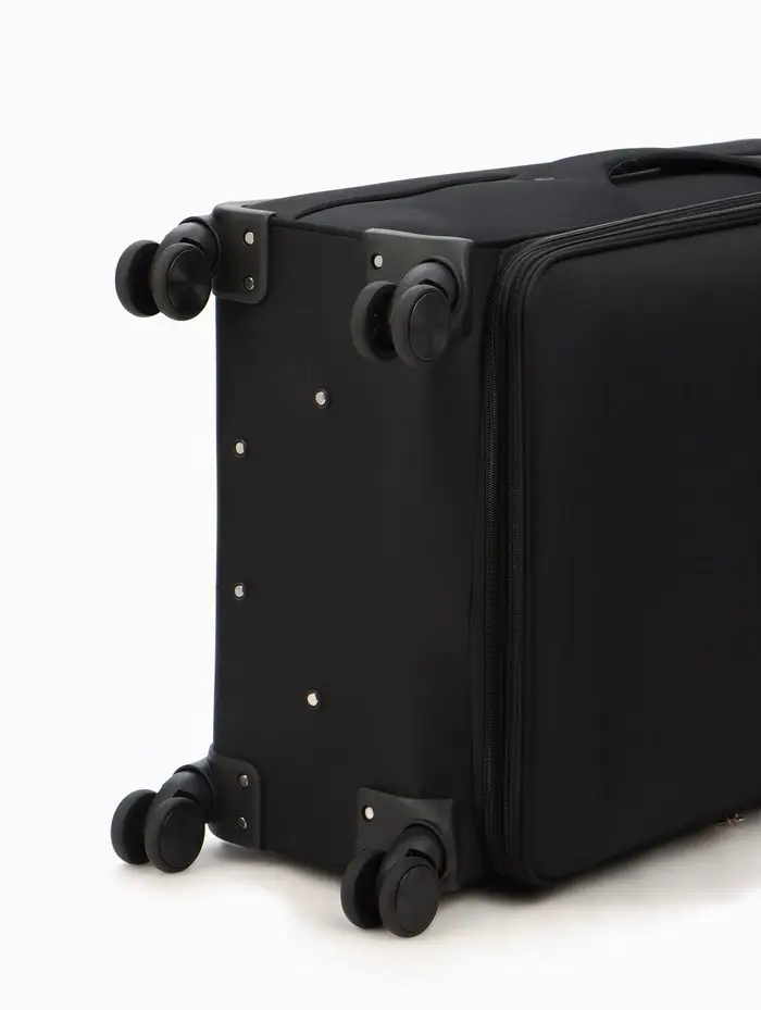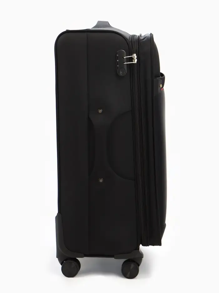 Этот чёрный дорожный чемодан на четырёх колёсах — ваш надёжный спутник в любых поездках. Его прочный текстильный корпус выдерживает дорожные испытания, а система увеличения объёма дарит дополнительное пространство для покупок и сувениров. Встроенный кодовый замок надёжно защищает ваши вещи, обеспечивая спокойствие в путешествиях.