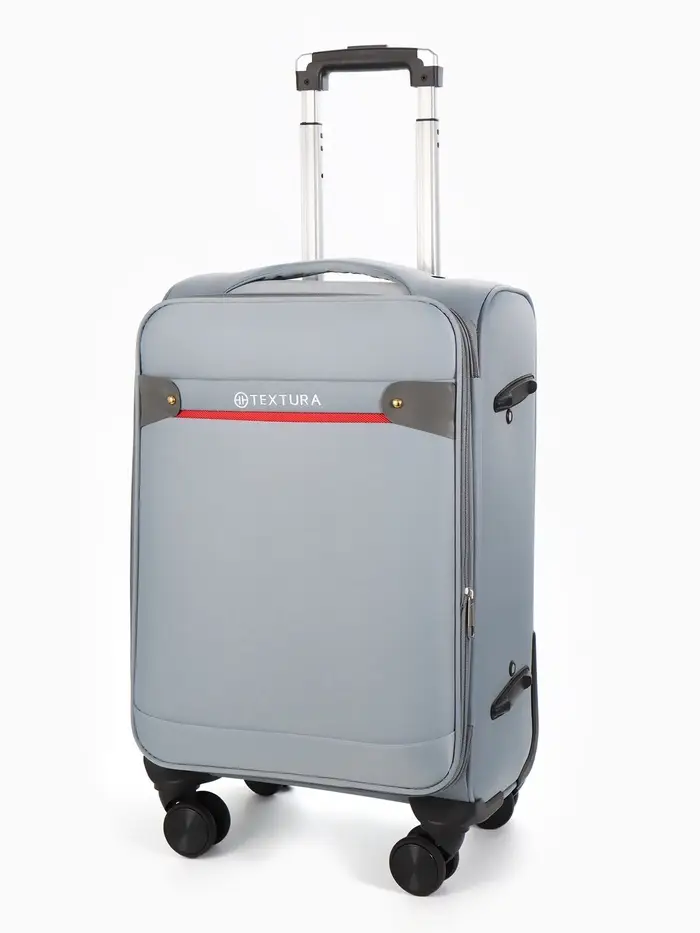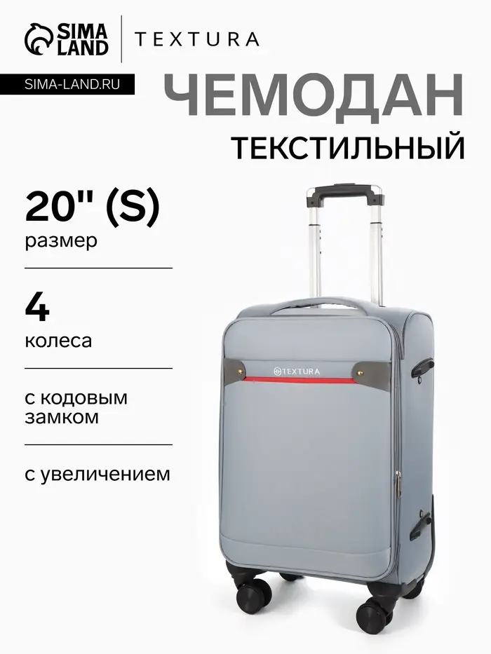 Чемодан на колёсах TEXTURA, кодовый замок, текстильный, с увеличением, 36×25×58 см, 20", серый