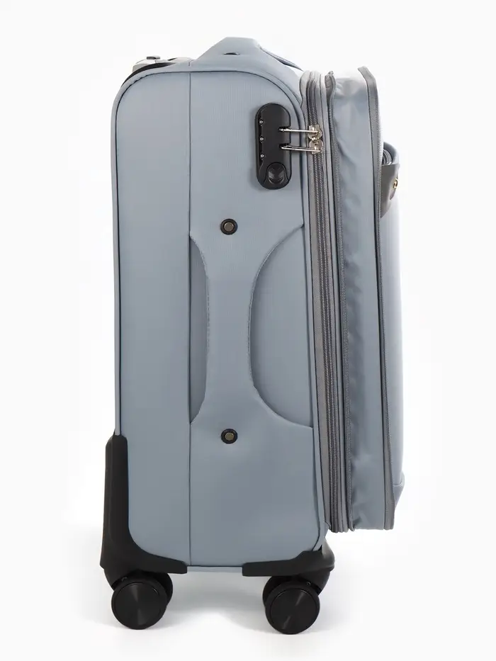 Этот серый чемодан на колёсах — ваш надёжный спутник в любых поездках. Компактный размер S (20 дюймов) делает его идеальным выбором для ручной клади в самолёт, а продуманная конструкция с четырьмя колёсами обеспечивает манёвренность и устойчивость. Вместимость 52 литра легко увеличивается, когда нужно уместить чуть больше вещей. Прочный текстиль и встроенный кодовый замок надёжно защищают ваши вещи.