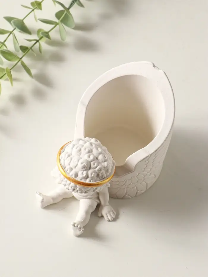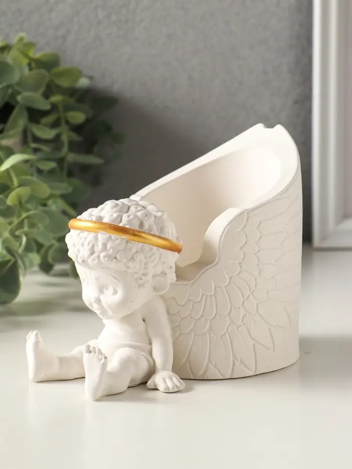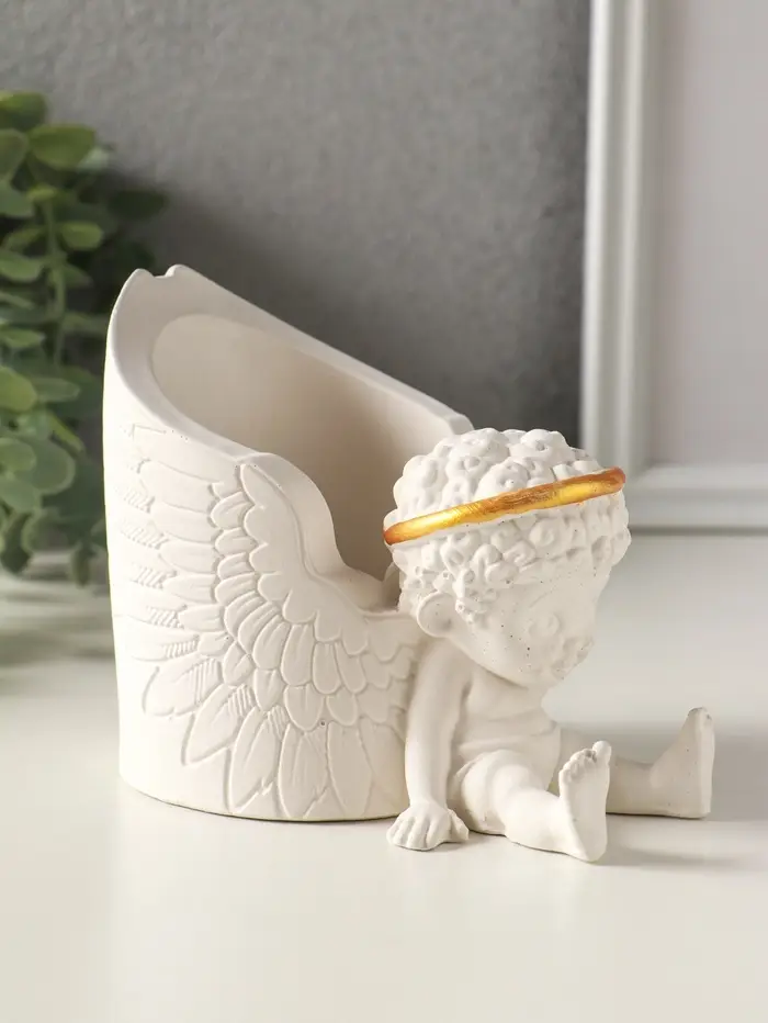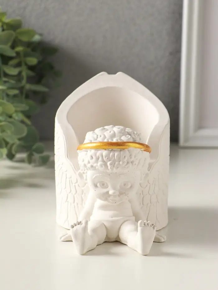 Карандашница "Ангел" 12х10 см, гипс, белый с золотом