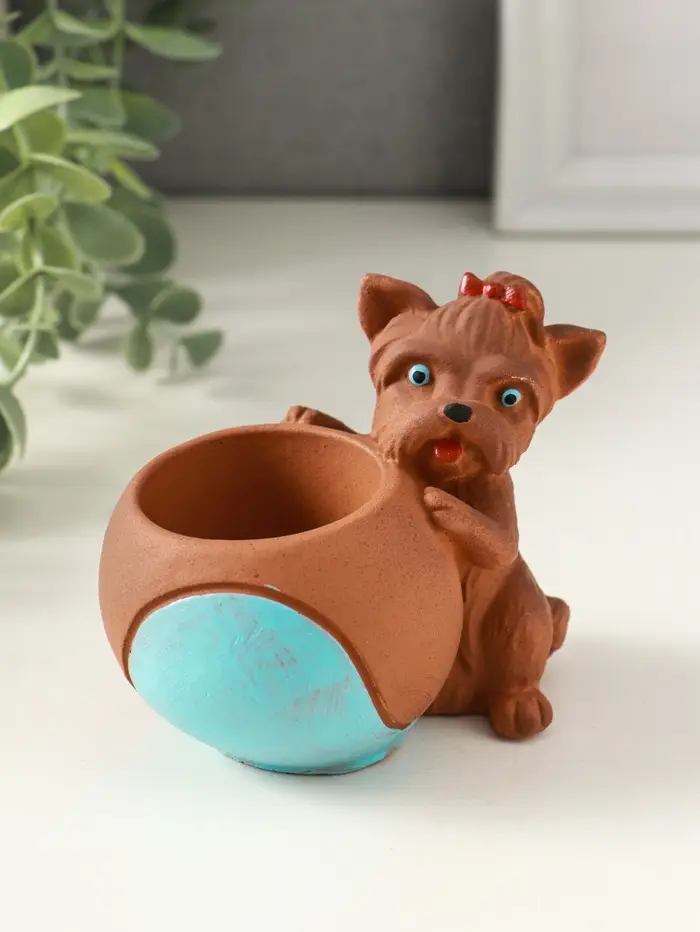 Подставка для мелочей «Собака с мячом» мультиколор, 8×10×6 см, гипс
