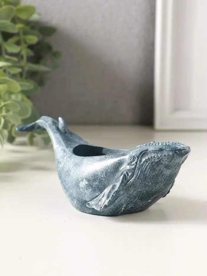 Подставка для мелочей "Кит" 6х14х5 см, гипс, серо-голубой