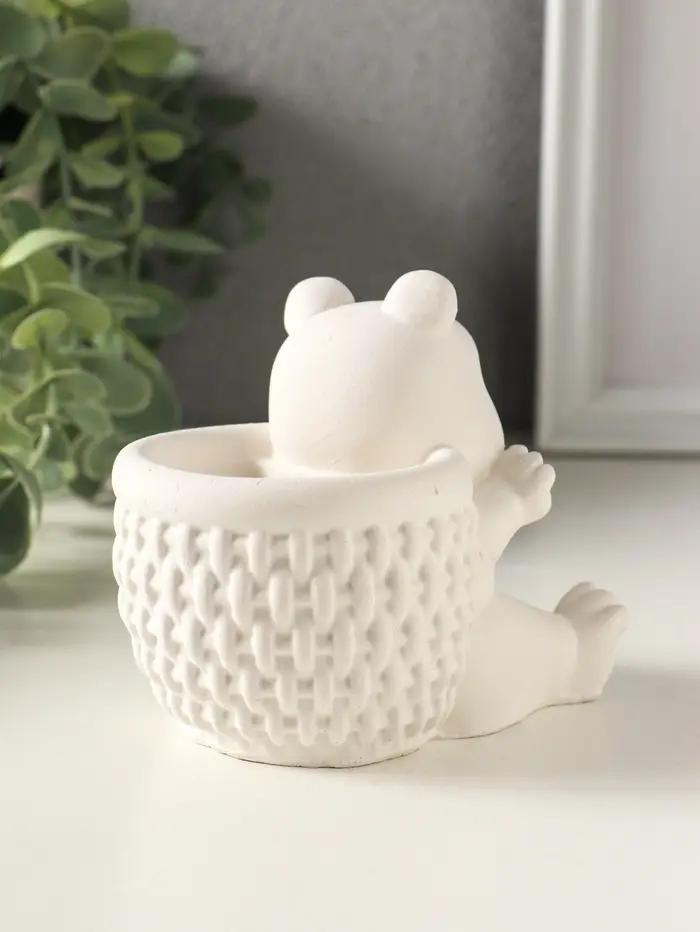 Подставка для мелочей «Медведь с корзинкой» 9×10×8 см, гипс