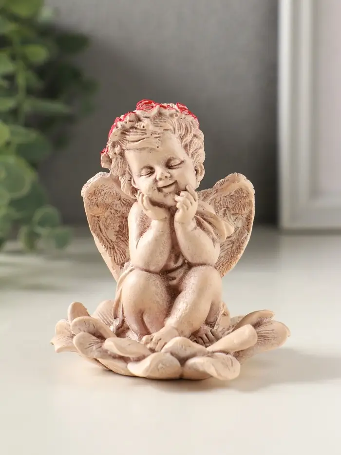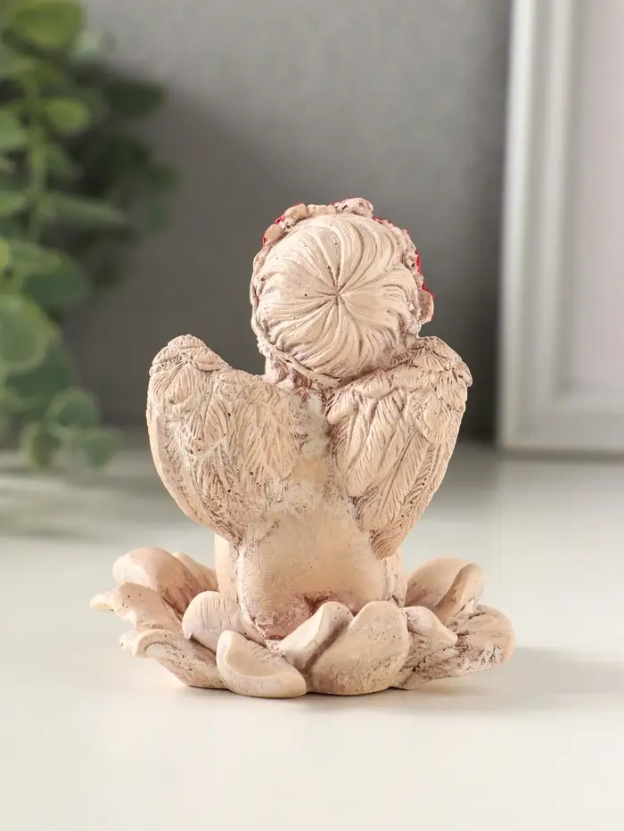 Фигурка гипс «Ангел на цветке», 9×7 см, состаренный эффект, слоновая кость