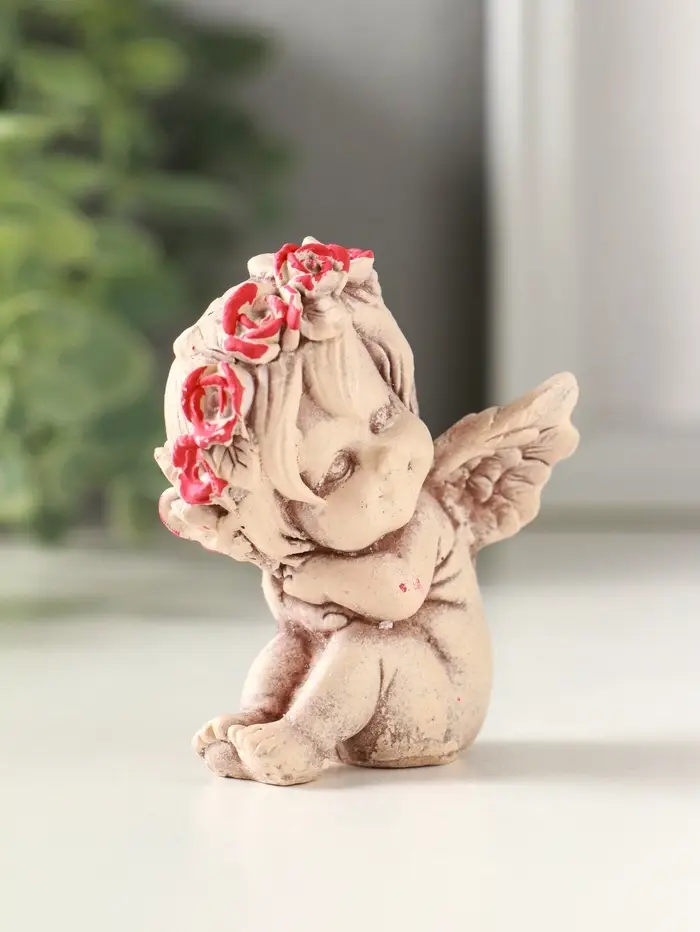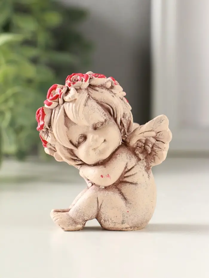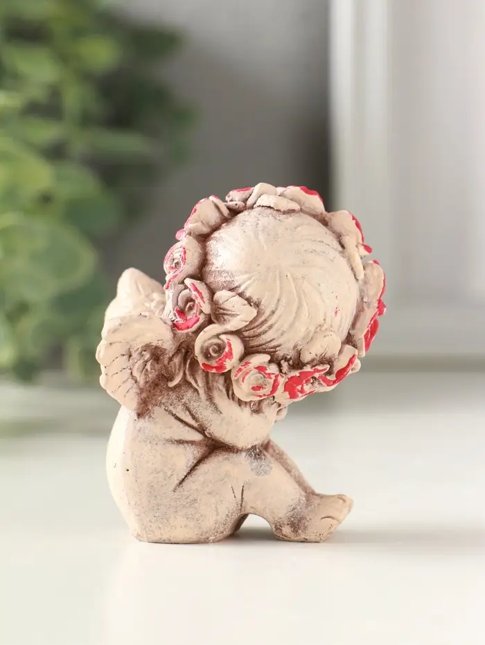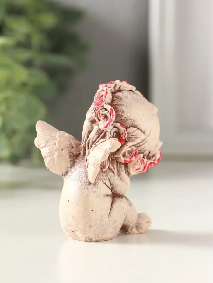Статуэтка "Ангел в венке" 7 см, состаренный эффект, слоновая кость,