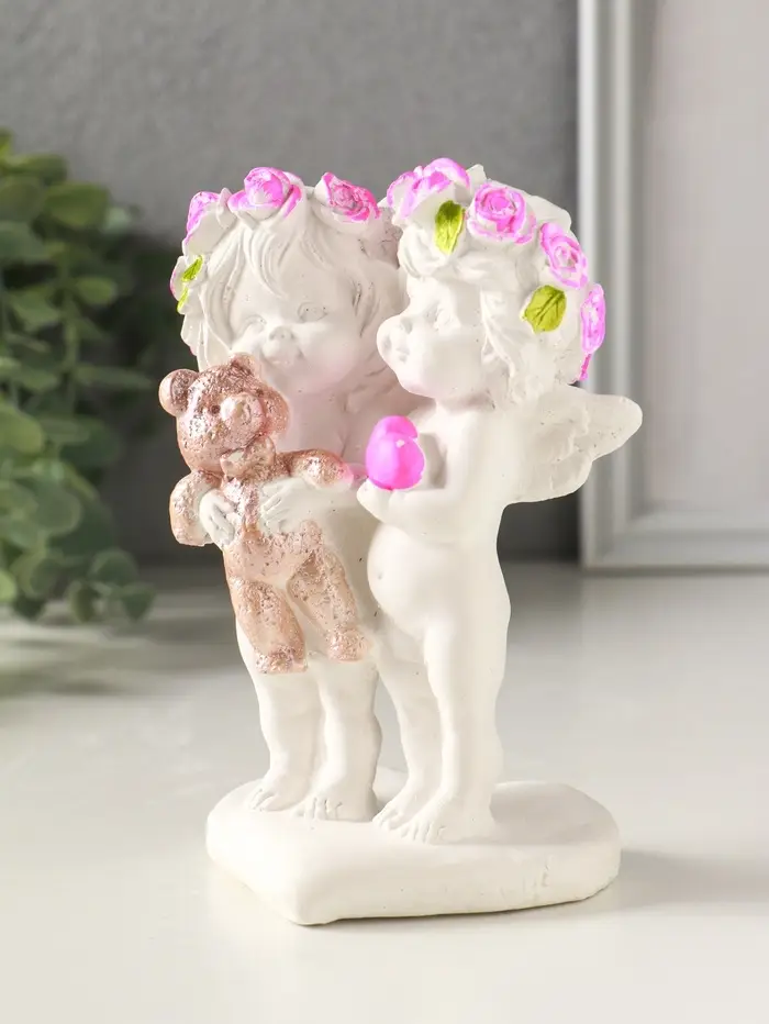 Фигурка гипс «Ангелочки с медведем», 13×7×9 см, белый с росписью