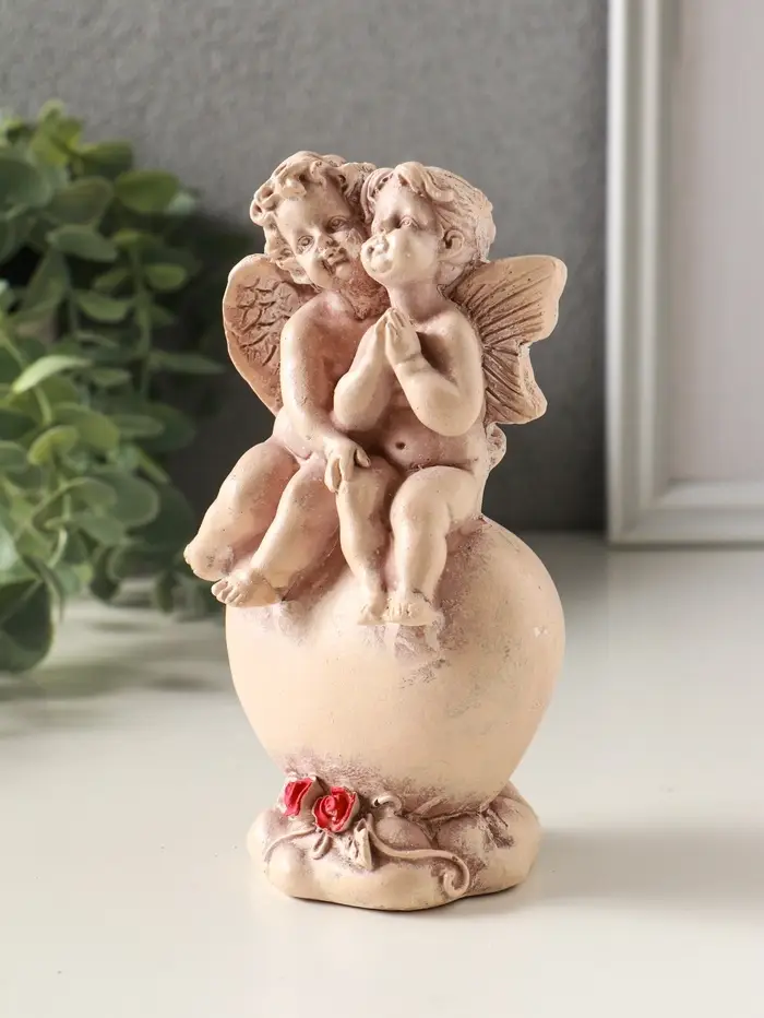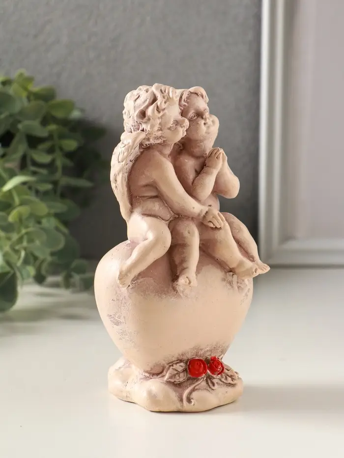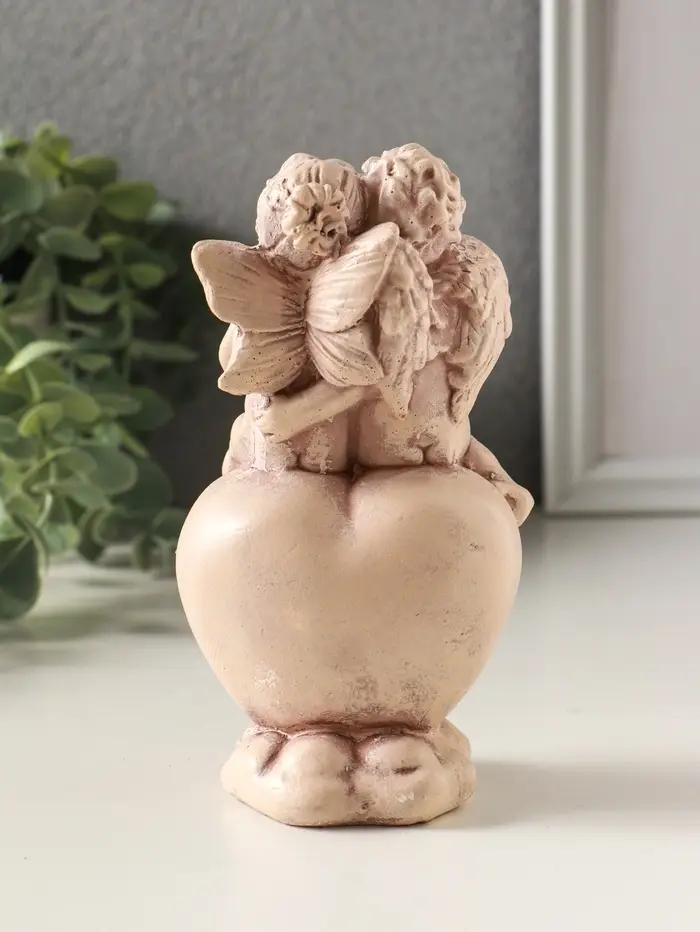 Статуэтка "Ангелочки на сердце" высота 15 см, эффект состаривания, слоновая кость