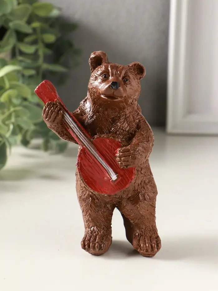 Статуэтка "Медведь с домрой" 11х7 см, коричневый