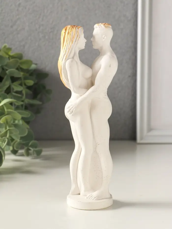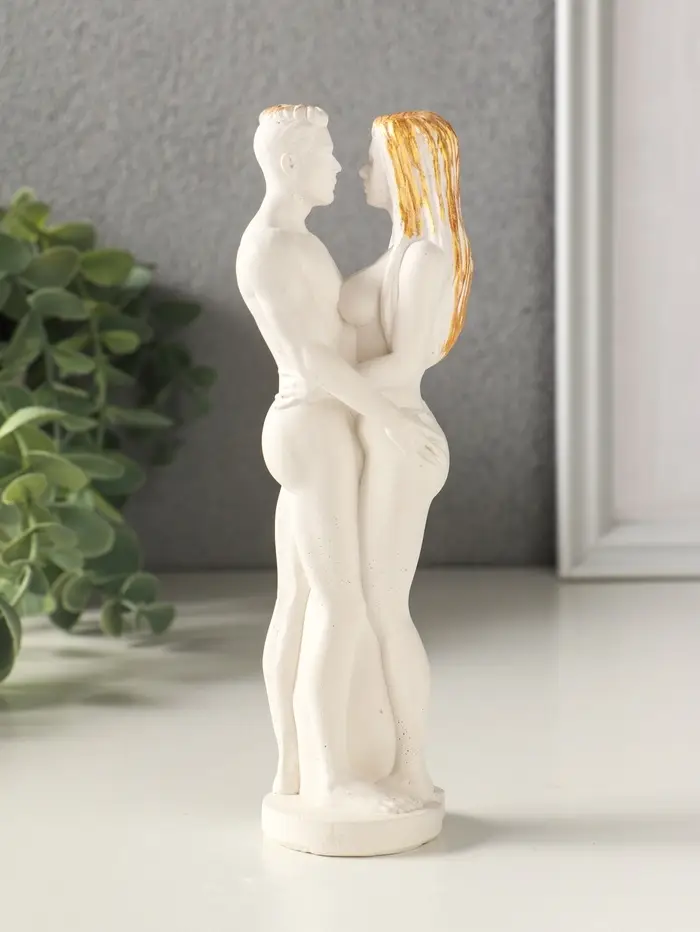 Фигурка гипс «Парочка», 16×5 см, белый с позолотой