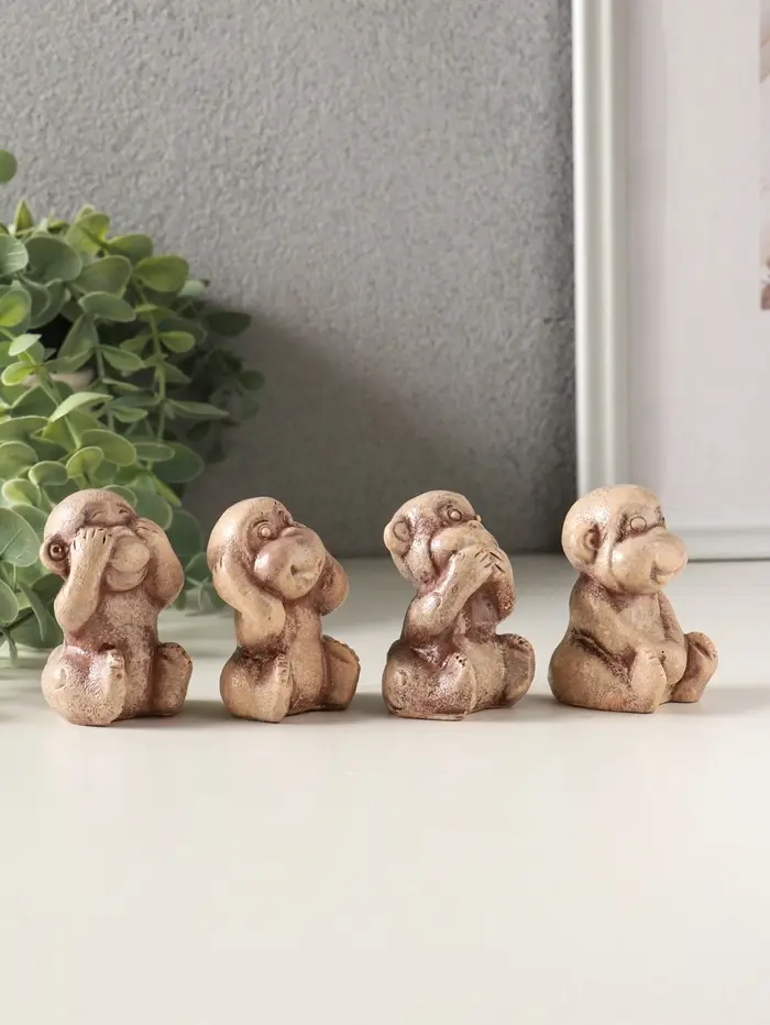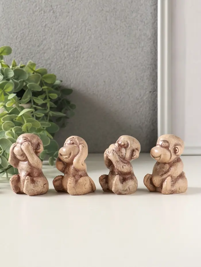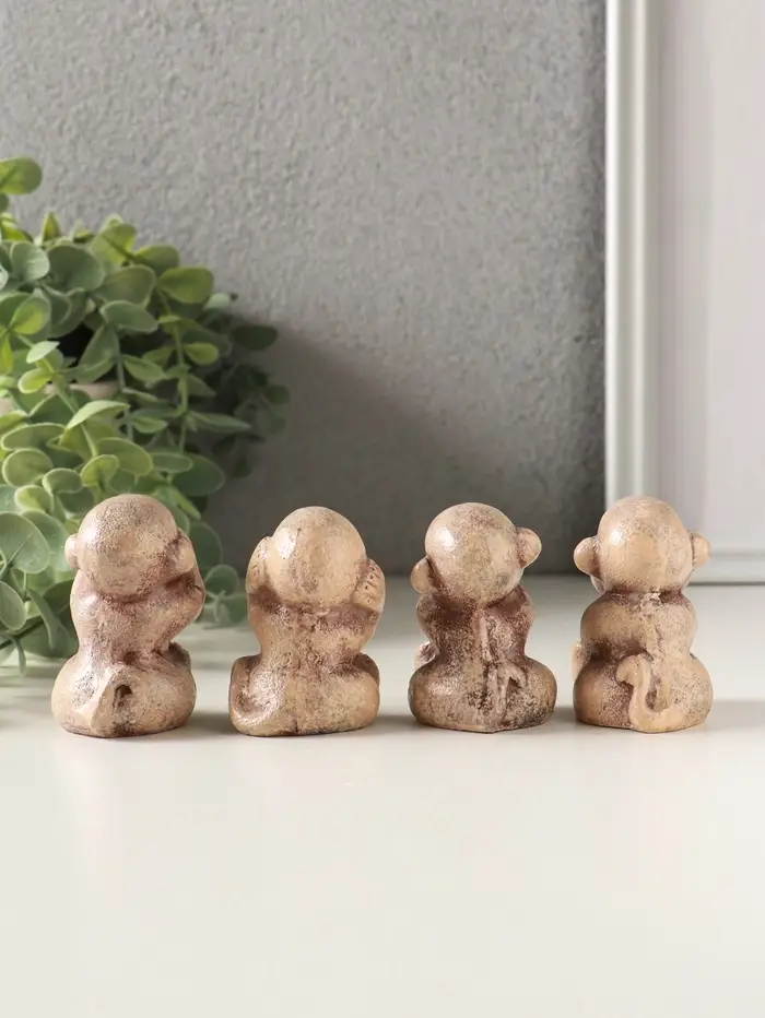 Статуэтки набор 4 шт "Обезьянки" высота 6 см, слоновая кость 10970272