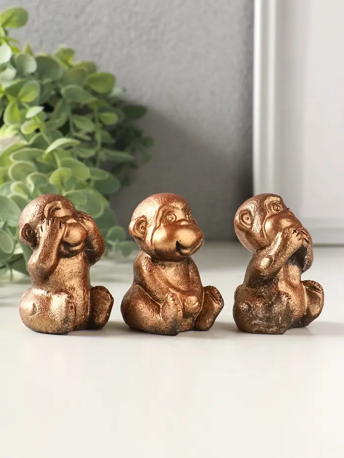 Набор фигурок гипс «Обезьянки ничего не вижу не слышу не скажу», 4 шт., 6 см, под бронзу