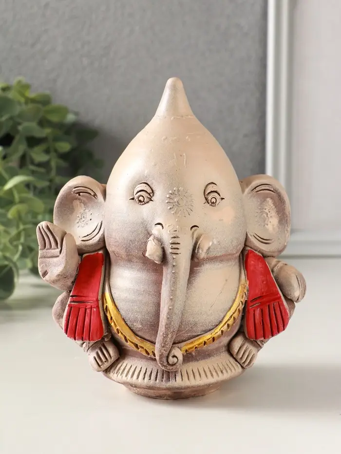 Фигурка гипс «Ганеш», 14×13×9 см, эффект состаривания, слоновая кость