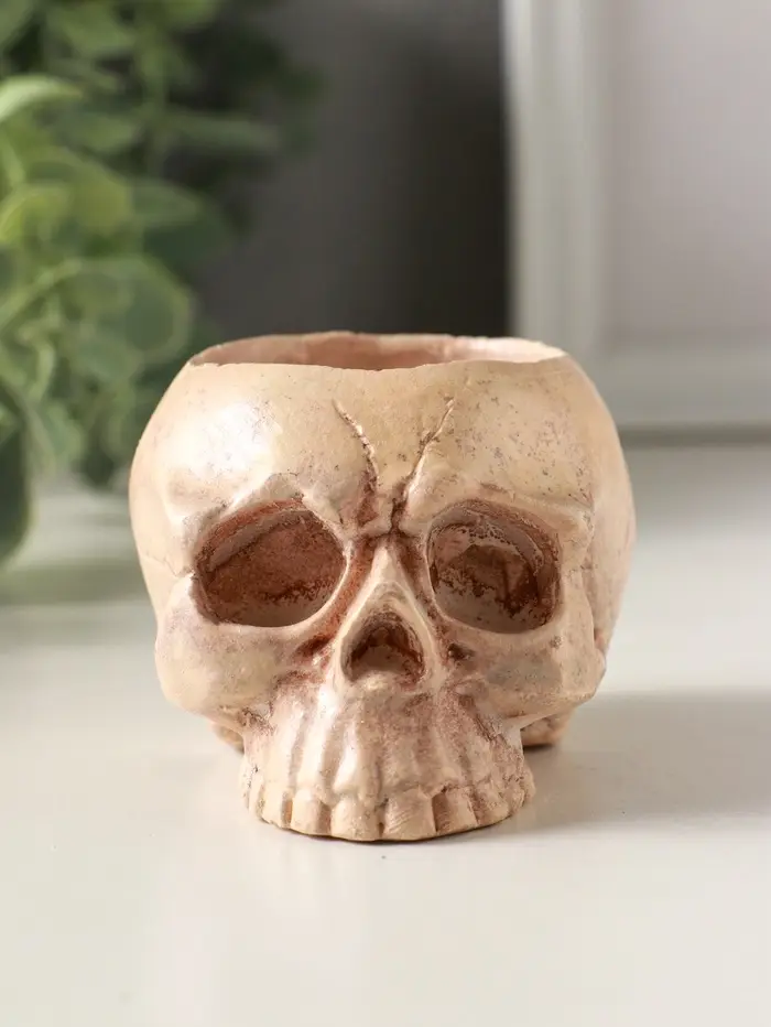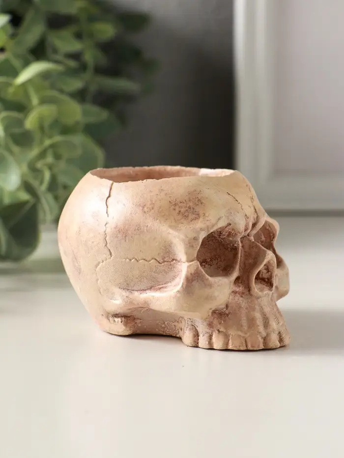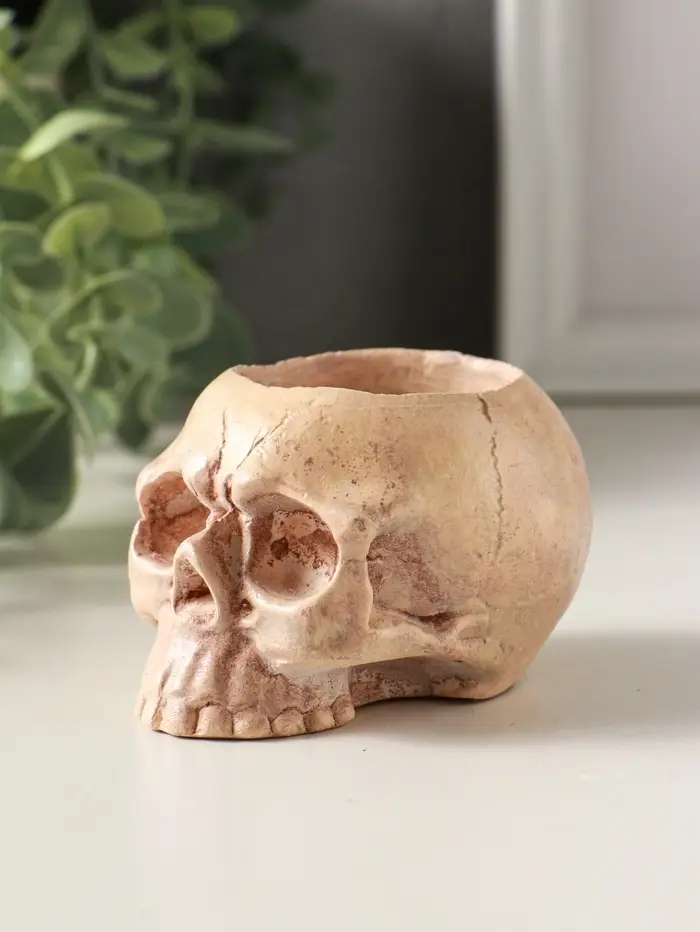 Подсвечник "Череп" эффект состаривания, слоновая кость